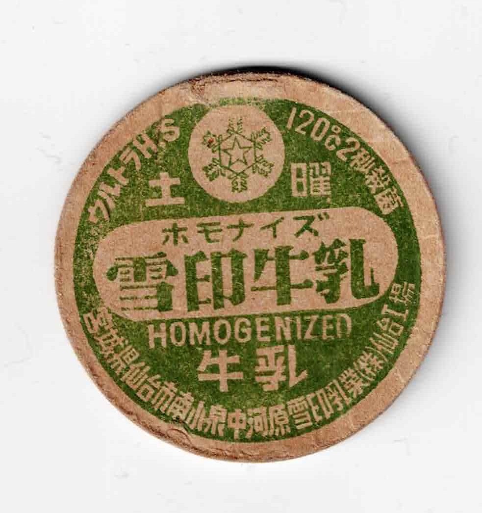 牛乳キャップ 宮城県 雪印牛乳 土曜 緑印刷