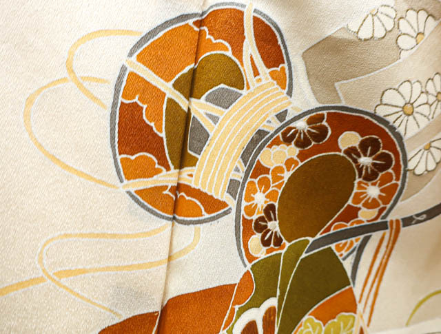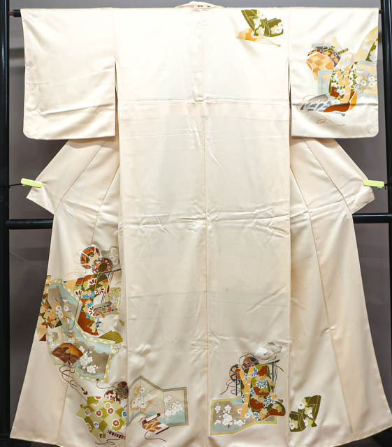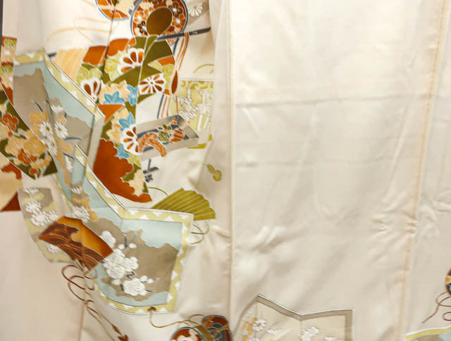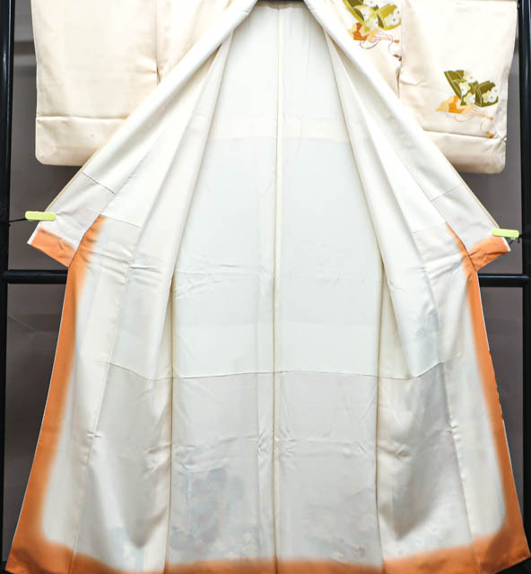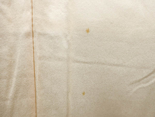 リサイクル商品のため、胴裏、後身頃、衿に汚れがございますが着用可能なお品です。 地色は、薄ピンクです。 1枚目の画像が近いお色かと思われます。 素材は正絹です。 |