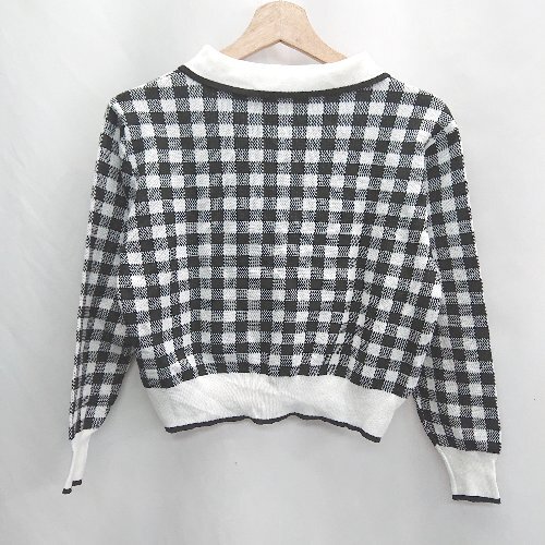 ◇ ⊇ WC ダブル シー ギンガムチェック 長袖 ポロシャツ サイズF ブラック ホワイト レディース E