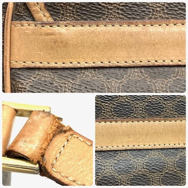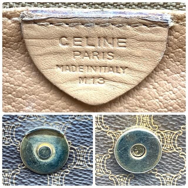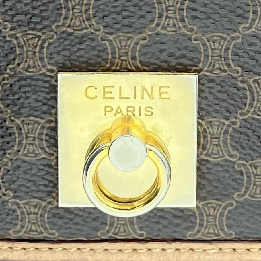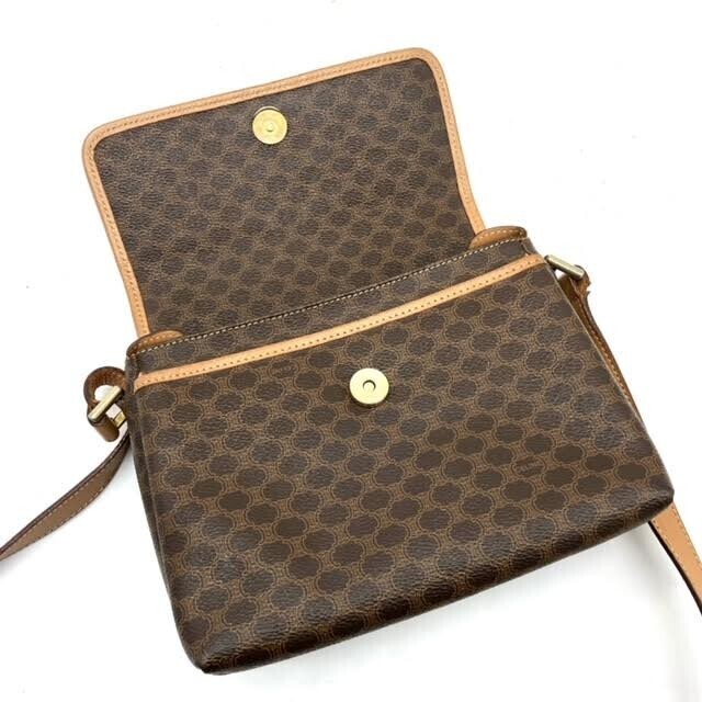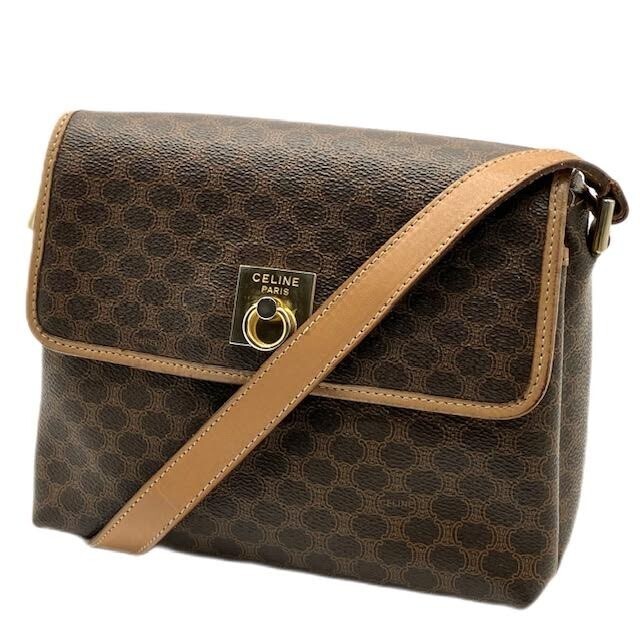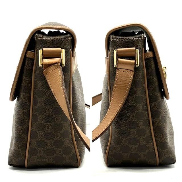 仙11 CELINE マカダム柄 ショルダーバッグ ブラウン ゴールド金具 トリオンフ セリーヌ 斜め掛け 肩掛け クロスボディ レディース