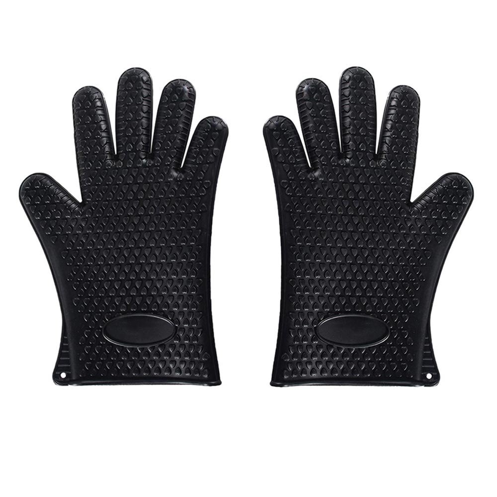 ◆耐熱シリコン手袋 2枚セット シリコン 5本指 滑り止め 防水 耐熱 耐冷 フリーサイズ 両手 左右兼用 キッチン アウトドア キャンプ バーベキュー 焚き火 ピザ窯【ブラック】SCGV145