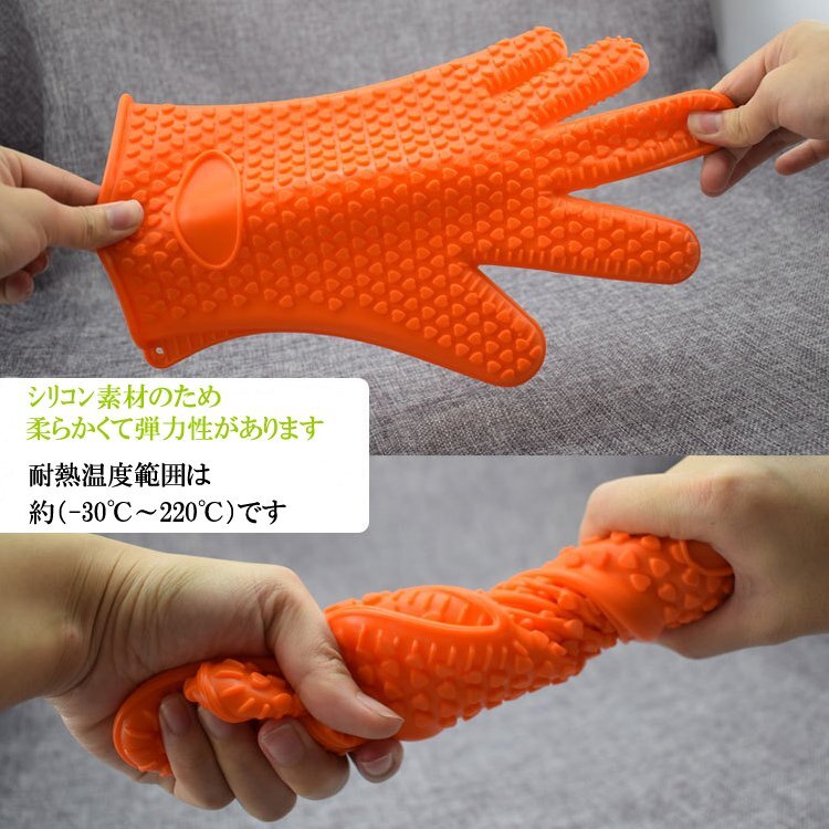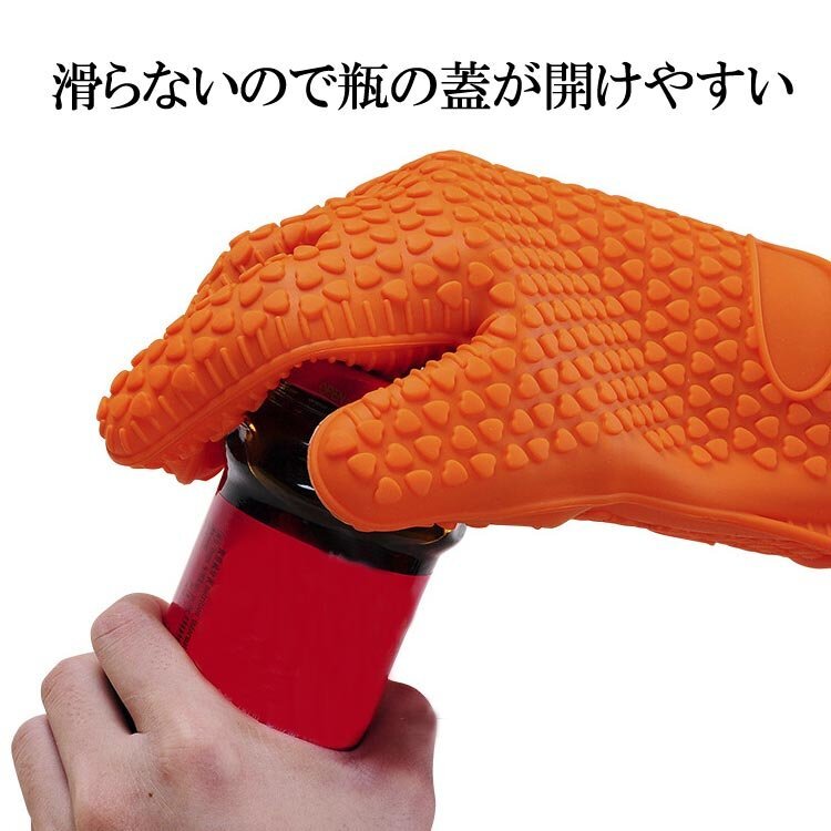耐熱シリコン手袋は、耐熱性・防水性かつ滑り止めに優れ、調理、BBQ、オーブンや電子レンジから熱した容器や食品の取り出し、冷凍品の取り扱いなど幅広く利用できます。