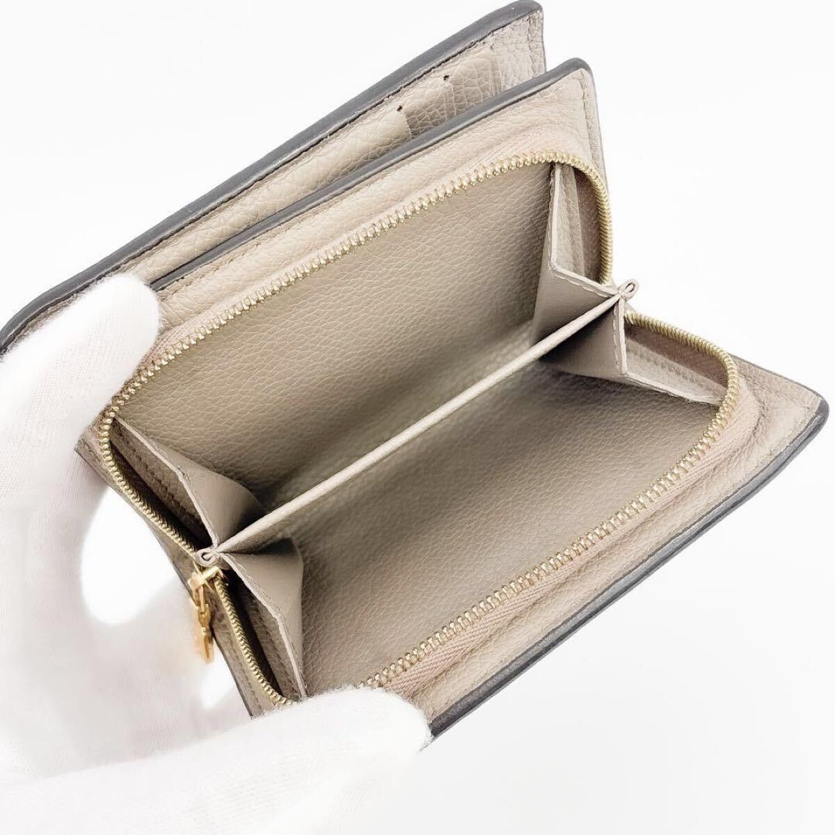 内部にはカードスロット、札入れ、小銭入れがしっかりと整理されており、コンパクトながらも非常に実用的◎