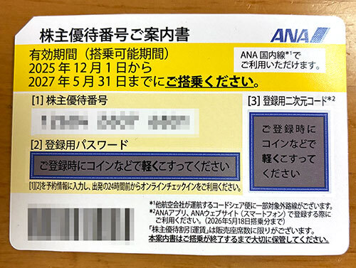 最新のANA株主優待券です。