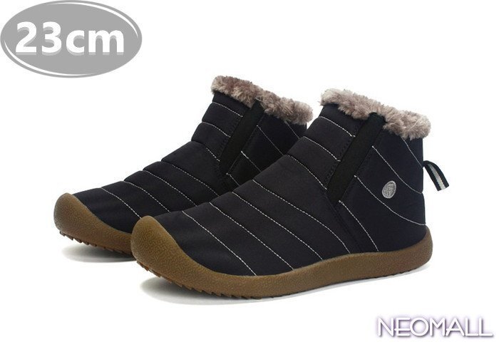 ユニセックス スノーシューズ 【868】 23.0cm ブラック ムートンブーツ スニーカー ウィンターブーツ 裏起毛 防水 防寒 防滑 冬用靴 綿靴
