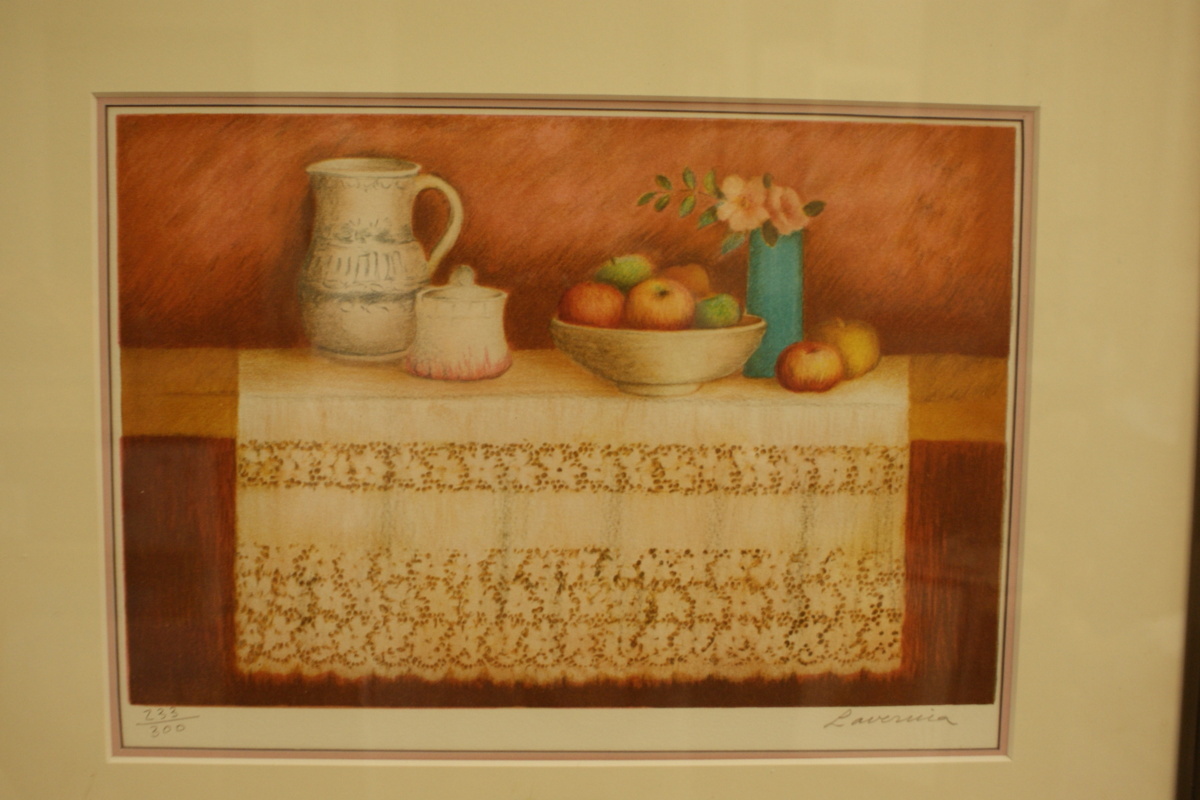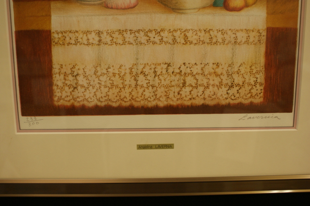 〈200〉アンジェリーナ・ラヴェルニア 作 「レースのテーブルクロス」(リトグラフ 23/300)