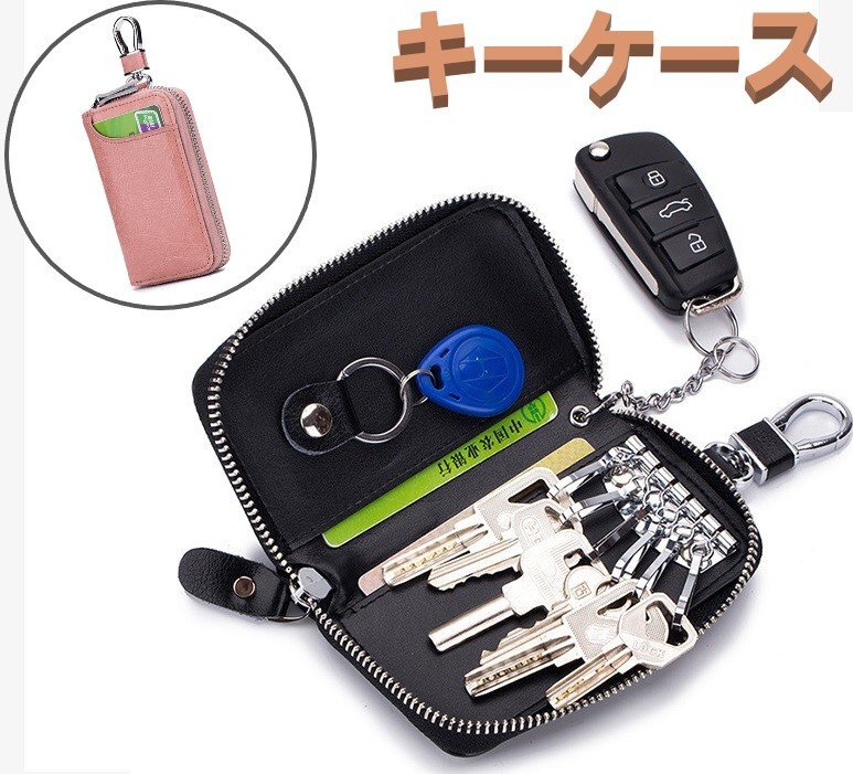キーケース 本革 ピンク レザー 鍵入れ 牛革 シンプル レザーキーケース キーリング キーフック n521