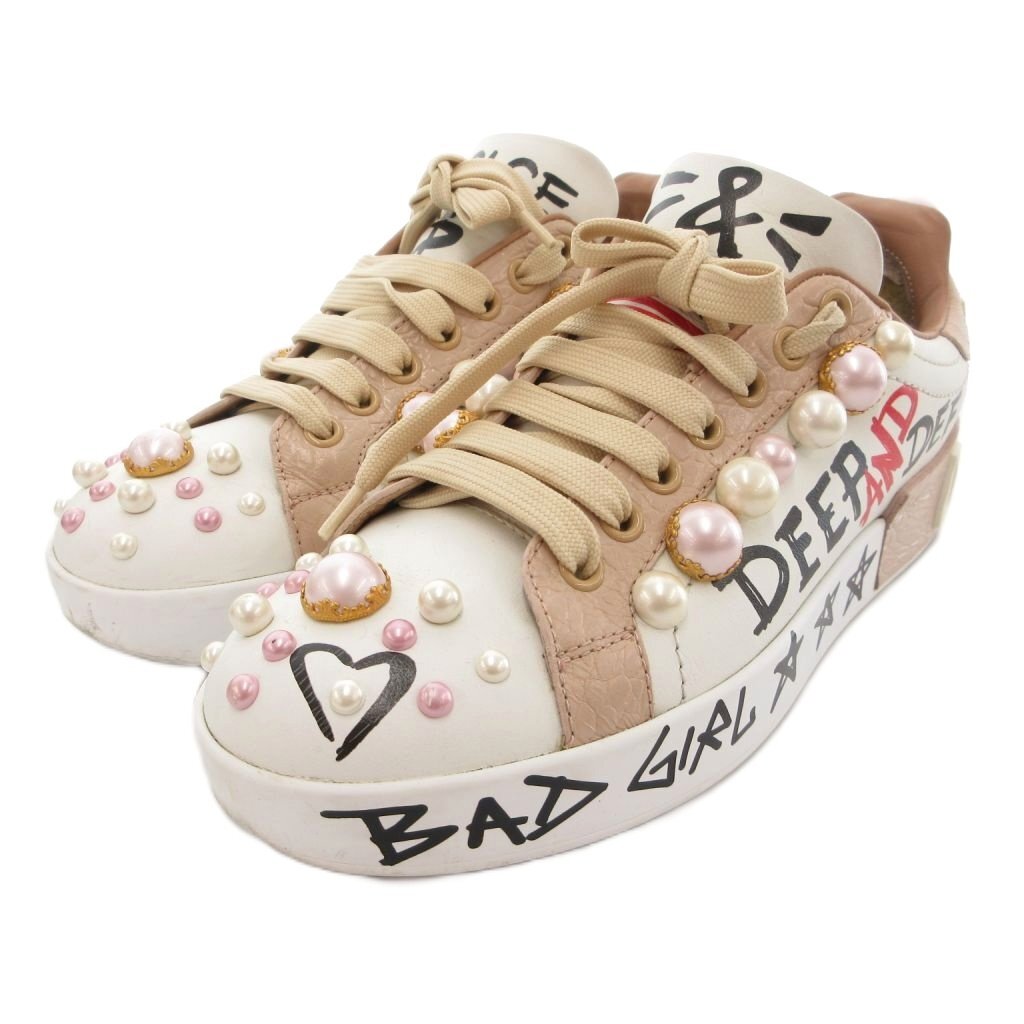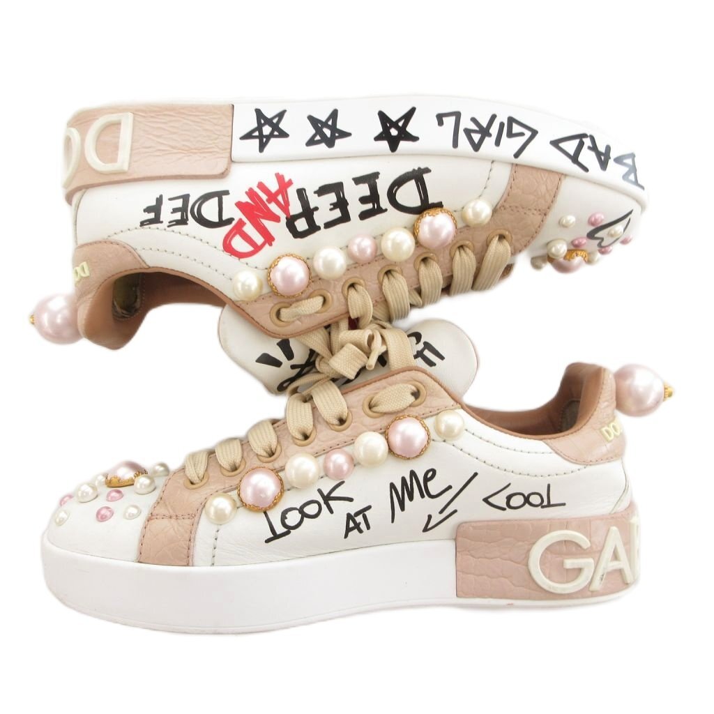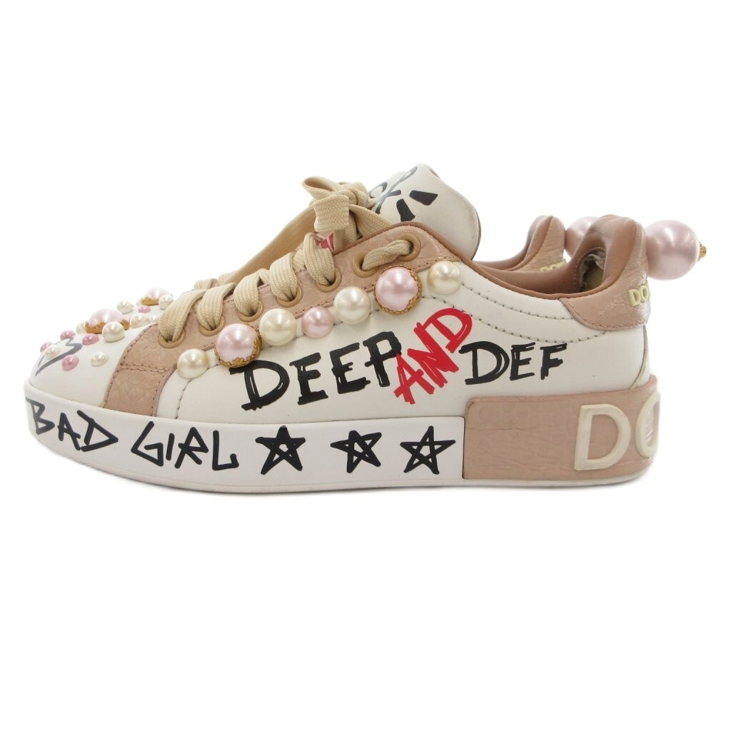 ドルチェ&ガッバーナ ドルガバ DOLCE&GABBANA ポルトフィーノ スニーカー シューズ グラフィティ ロゴ ビジュー フェイクパール 35