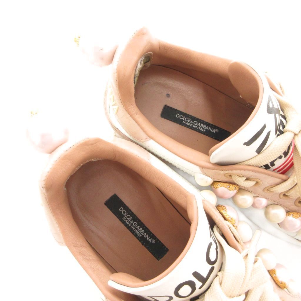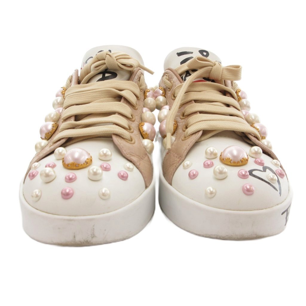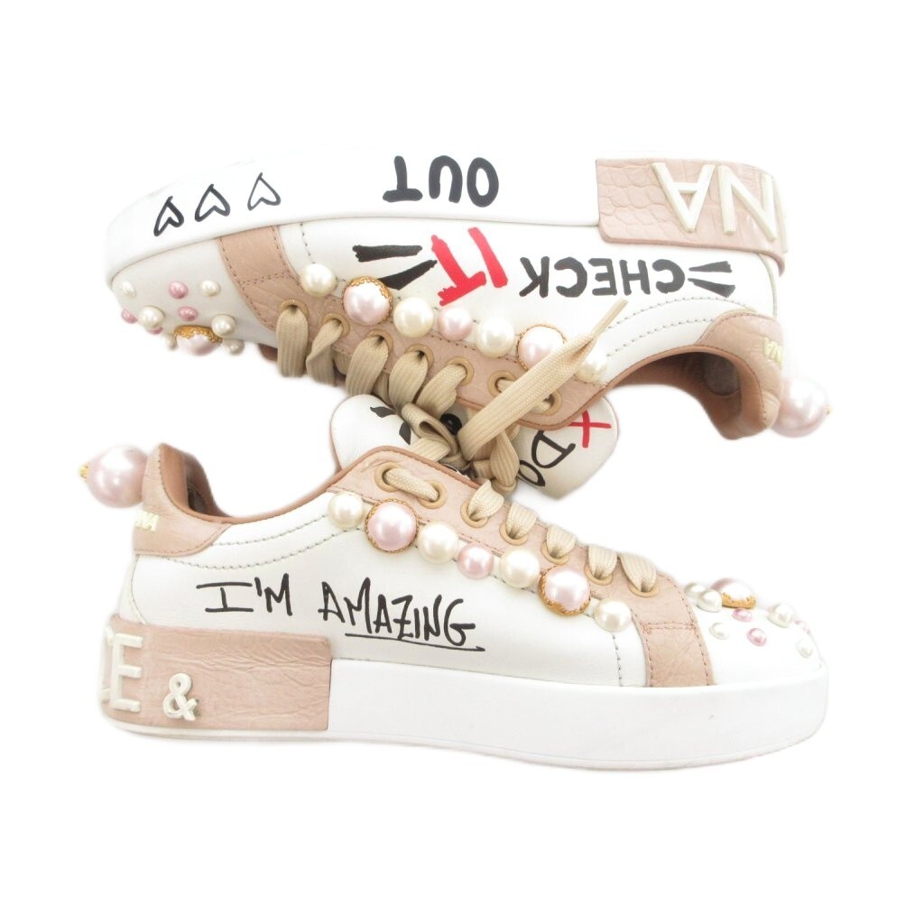 ドルチェ&ガッバーナ ドルガバ DOLCE&GABBANA ポルトフィーノ スニーカー シューズ グラフィティ ロゴ ビジュー フェイクパール 35