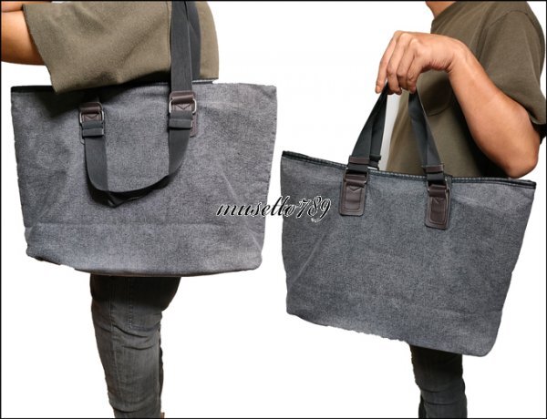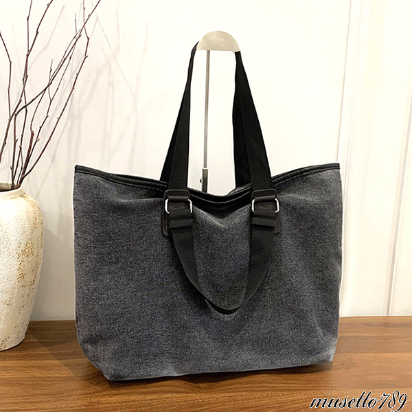 大容量!◆デニム調 トートバッグ グレー◆柔らかで丈夫なbag!2way 帆布 限定 ボストン 鞄 ヴィンテージ調 1円~ A4/雑誌楽々 黒 1075y