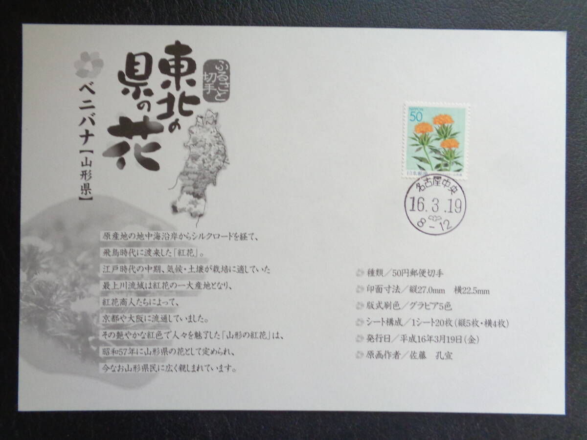 初日印     切手説明書    2004年    ふるさと切手   東北の花    山形県