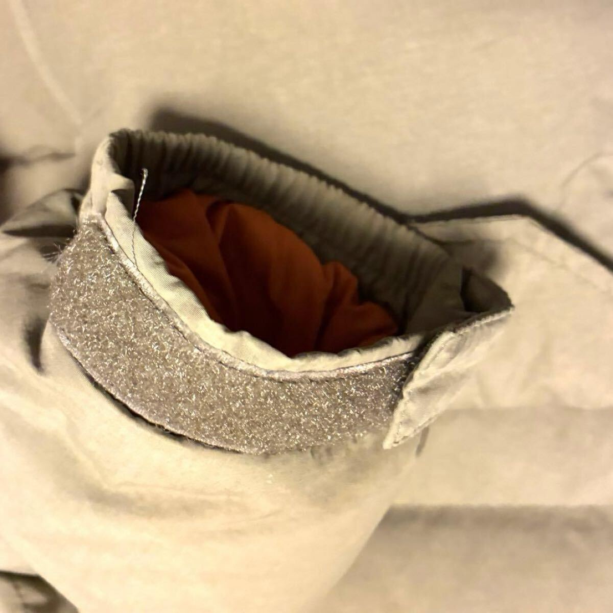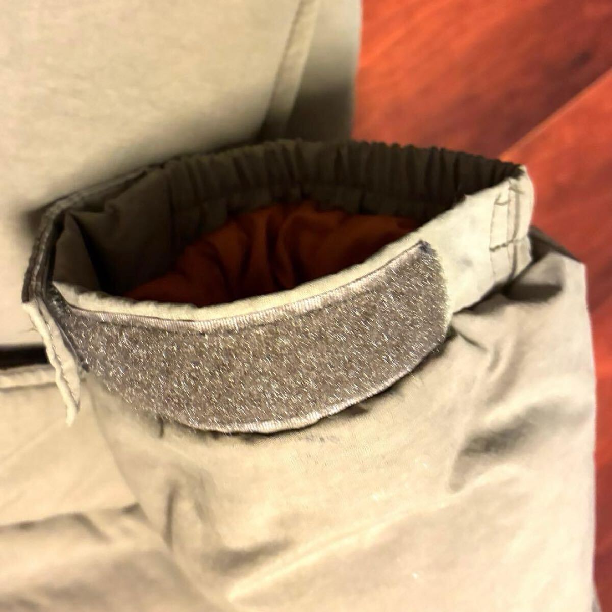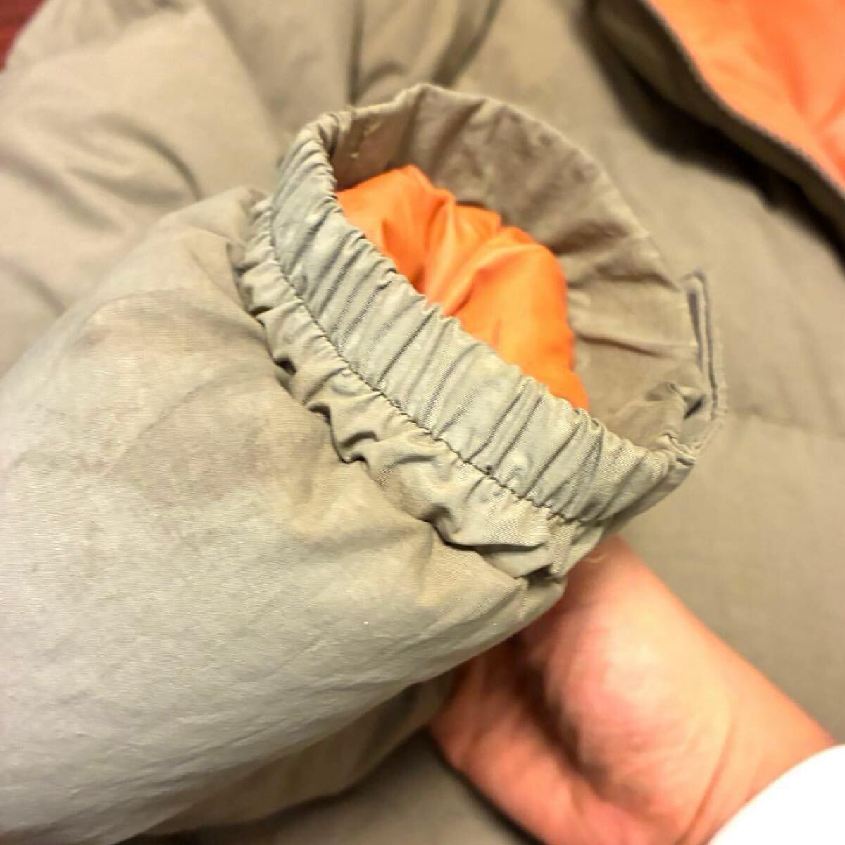 袖口、襟部分に汚れ、左胸付近、左肩甲骨付近に小さなシミ、ポケットのマジックテープ部分に取りきれない汚れがあります。