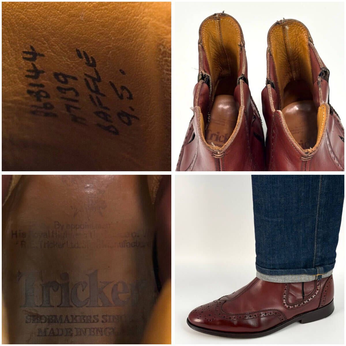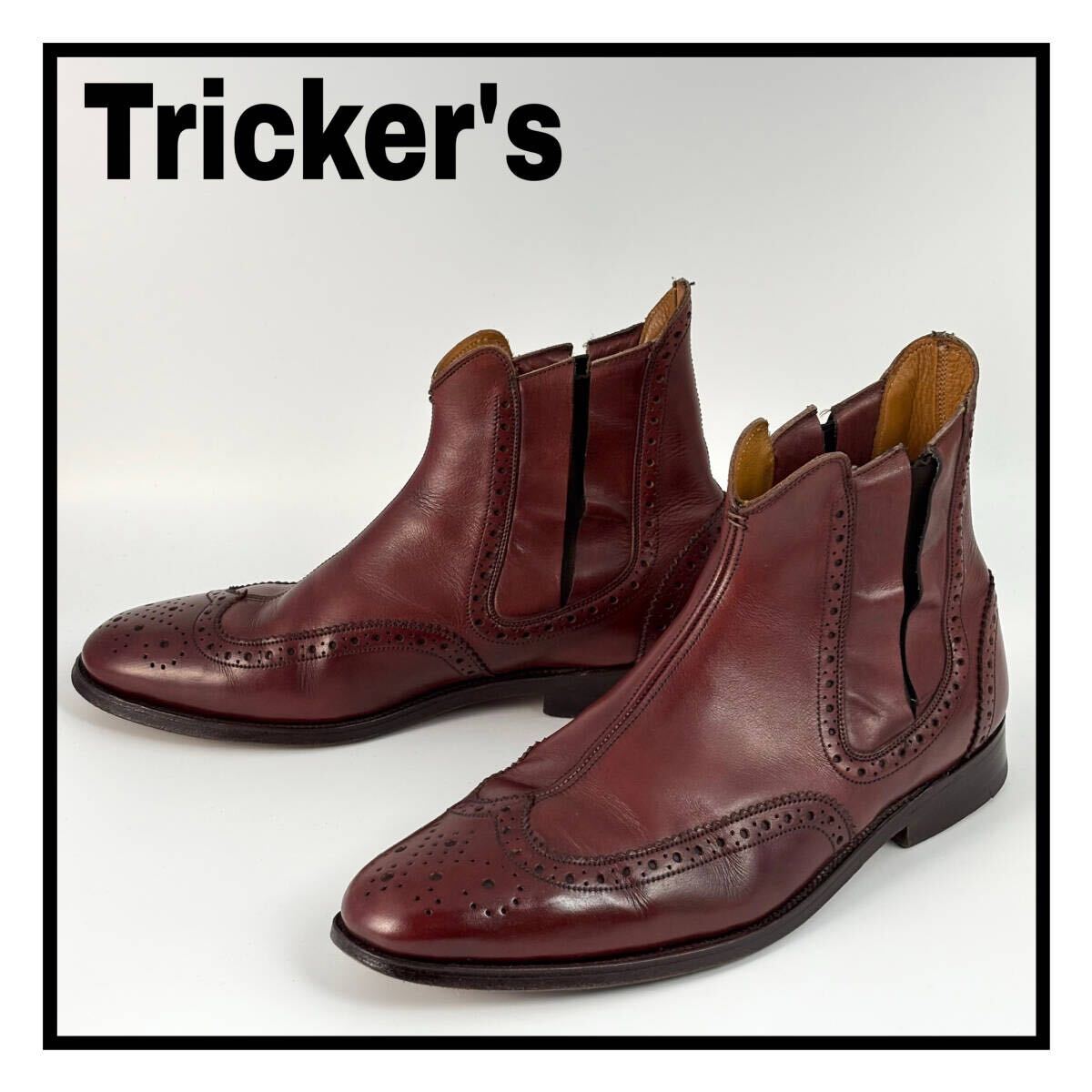 Tricker's トリッカーズ BAFFLE 7139 サイドゴアブーツ ショートブーツ ウイングチップ レザー ボルドー ワイン UK9 27.5cm 革靴 シューズ