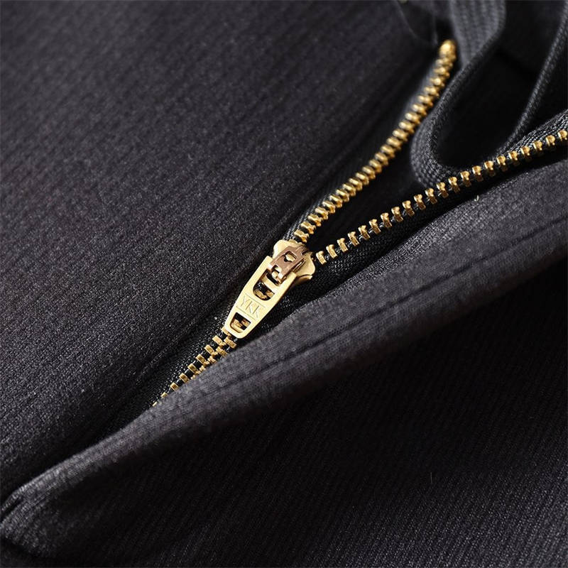 YKKファスナー、刺繍ディテール、三重縫製仕上げなど、細部までこだわった高品質な一着。