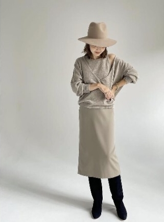 程よくマットで、上質な質感が魅力のスカート。ぴったりとしたIラインのシルエットを作るため、ウエストは少しハイウエストにしています。フロントはシンプルですが、バックスタイルはメンズの要素を入れて、ポケットとダーツでマニッシュな雰囲気に。合わせるトップス次第で、オンオフ問わず幅広く活躍してくれるアイテムです。