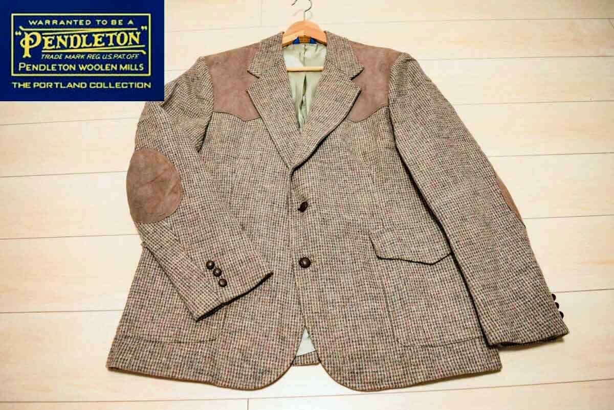 USA製 PENDLETON ペンドルトン 2釦 胡桃釦 肘肩革 エルボーパッチ カントリーツイード テーラード ブレザー ジャケット 2XL 冬 (K00110507)