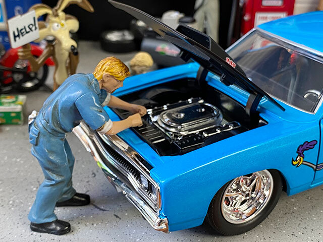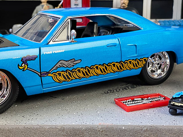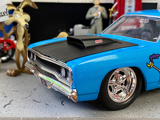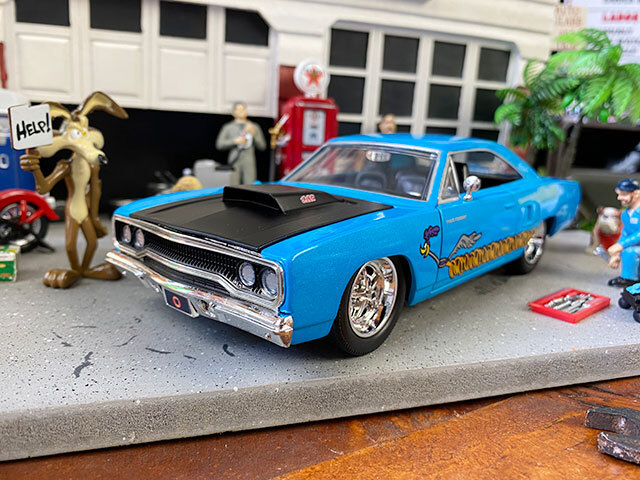 1970年プリムス・ロードランナーにワーナーのキャラクター、ロードランナーがデザインされた車両に、天敵コヨーテのフィギュアのセットなの!