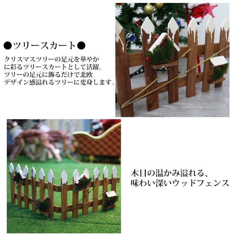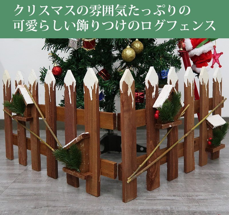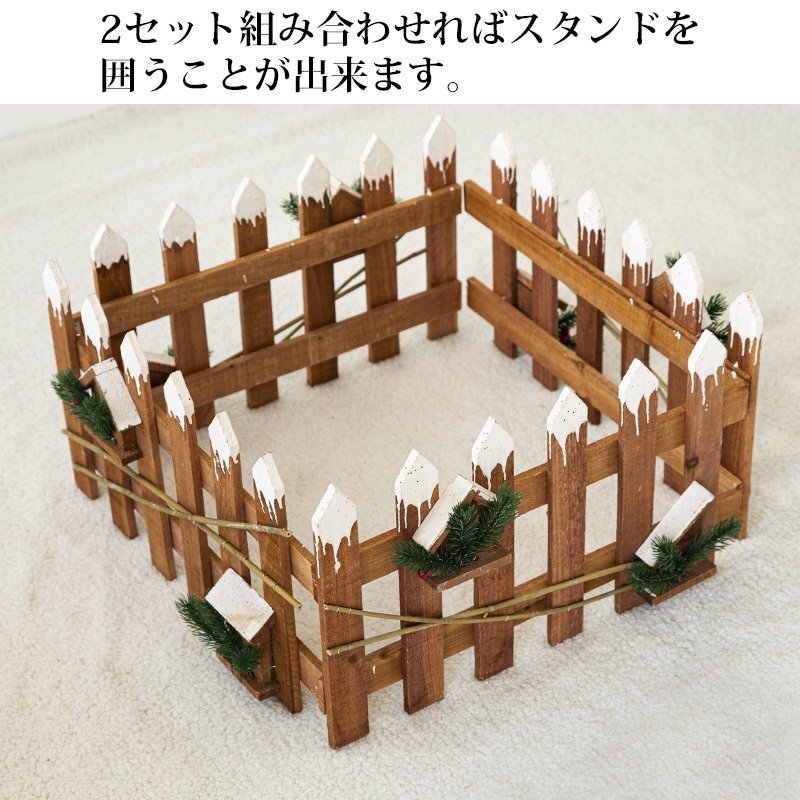 【ぬくもり溢れる天然木ウッドフェンスで、豪華に飾りつけ】 クリスマスの雰囲気たっぷりの可愛らしい飾りつけのログフェンス! 素敵なムードを演出する木製ツリースカート/ガーデンフェンスが登場! 天然木を用いたおしゃれで使いやすいウッドフェンス。 落ち着きのあるブラウンカラーが見た目からも癒しを与えてくれます。 用途に応じて複数連結させて使って頂く事で、自由にレイアウトして頂けます。 足元に敷くだけで北欧風の雰囲気あるツリーに大変身! 当社自慢のクリスマスツリーとも相性抜群です! シンプルなツリーも良いけど何だか味気なく感じる・・・、といった方にオススメの「ツリースカート」です。 ツリーの足元に飾るだけでツリーを華やかに彩ってくれます。 デザイン性を追及した本格派ツリースカートで 例年以上にオシャレで、雰囲気のあるクリスマスを過ごしてみてはいかがでしょうか? クリスマスツリーの足元を彩るツリースカートとして使えるだけでなく、 お庭の花壇等を豪華に飾りつけるガーデンフェンスとしてもお使い頂ける商品となっております。 素材:天然木 サイズ(約) 片側幅49cm、高さ30cm、奥行2cm 1個全長幅98cm 重量(約):800g ※天然木を用いた商品となりますので多少の割れや固体差がございます。 ※加工の都合上、表面が黒ずんで見えますがカビや汚れではございません。 |