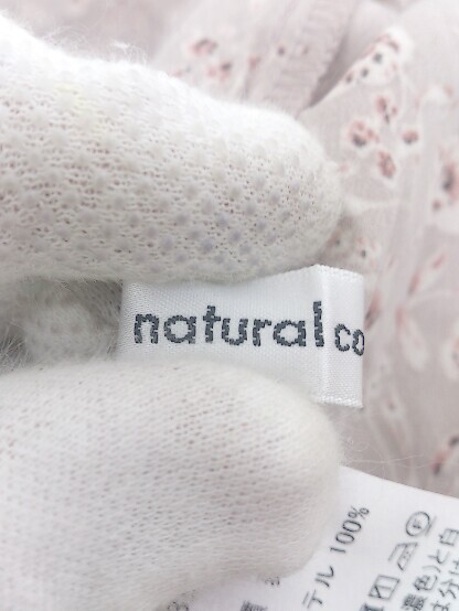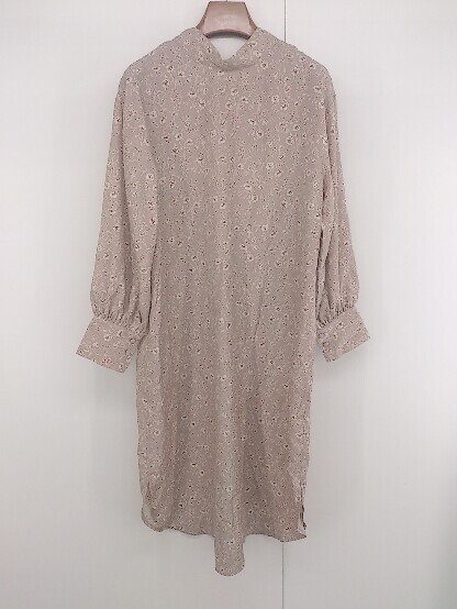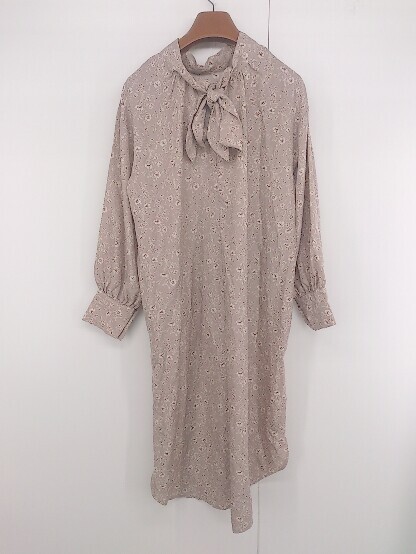 ◇ natural couture 花柄 リボン スタンドカラー 長袖 膝下丈 ワンピース ベージュ レディース P