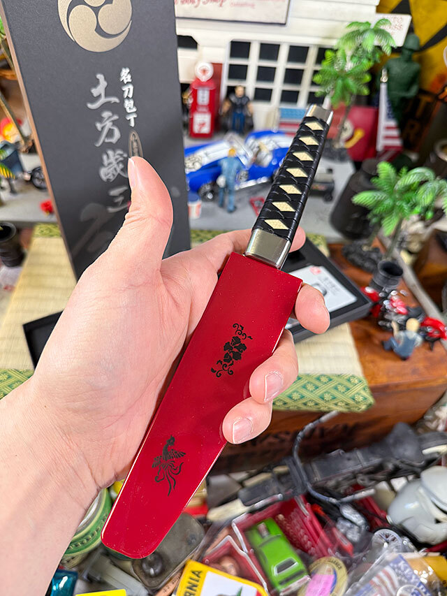 日本刀をイメージしてあるので「つか」(持ち手)のところは 目抜きの模様になっていて