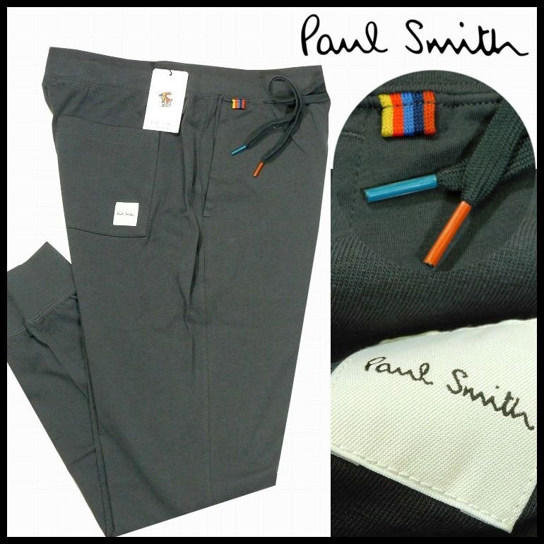 新品 1円~ ポールスミス ジョガーパンツ アーティストストライプタブ L チャコール コットン Paul Smith メンズ【4740】