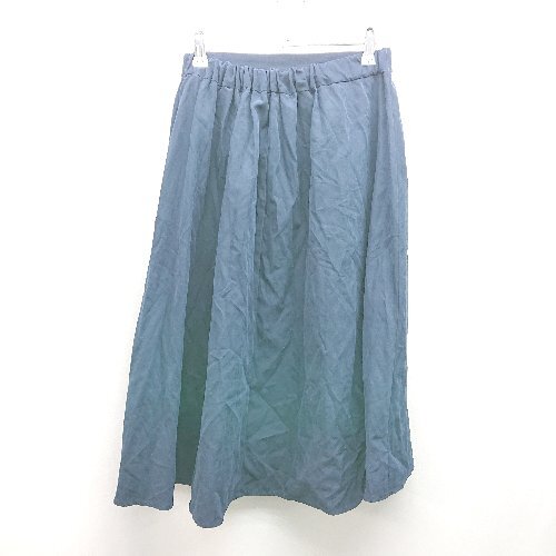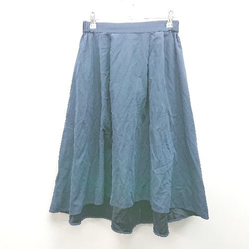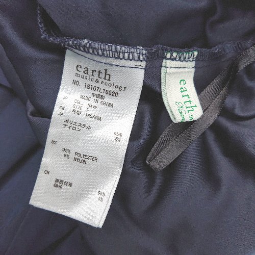 ◇ earth music&ecology スエード生地 バックウエストゴム 綺麗め ロング フレア スカート サイズF ネイビー レディース E