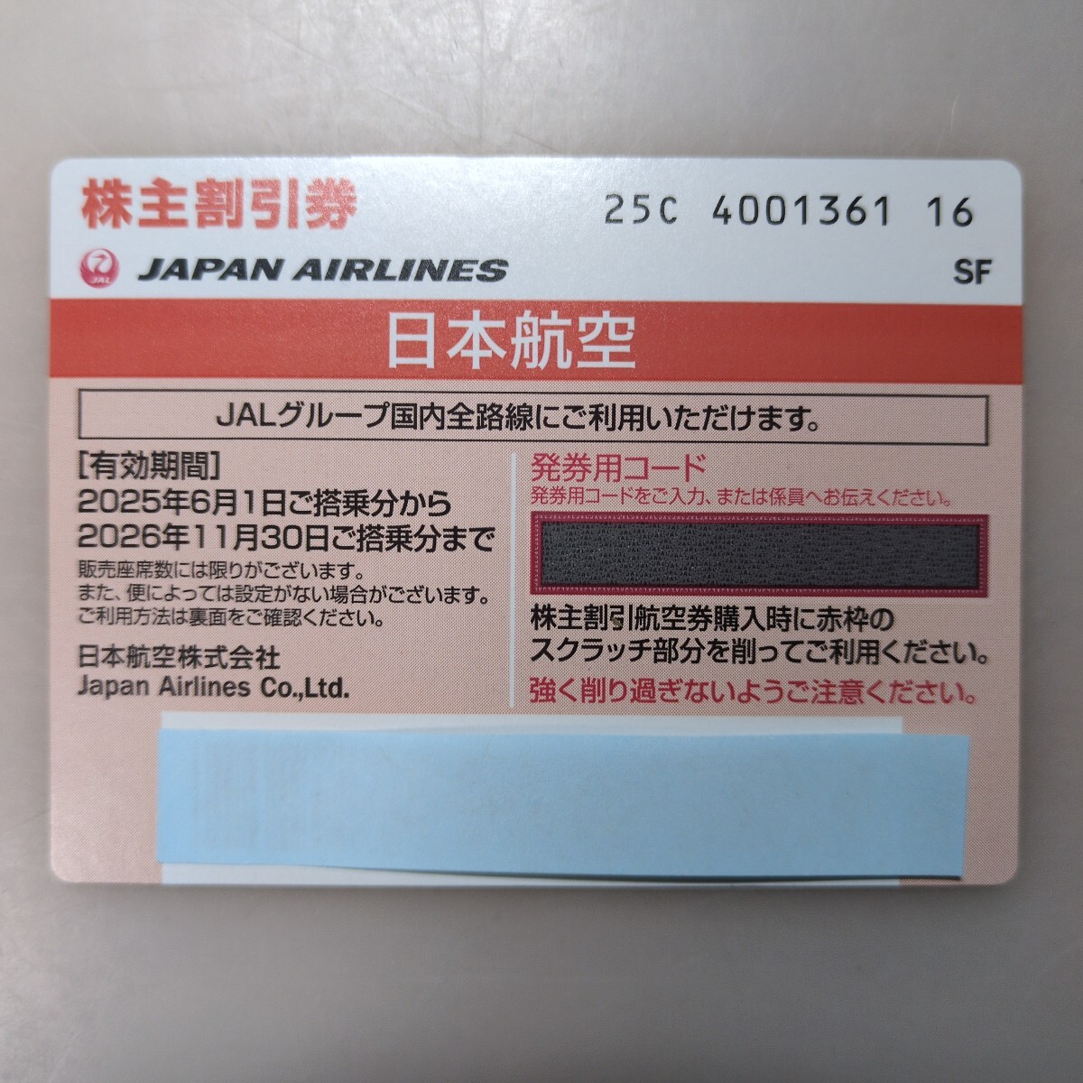 JAL 日本航空 株主割引券(2026年11月30日搭乗まで有効)1枚