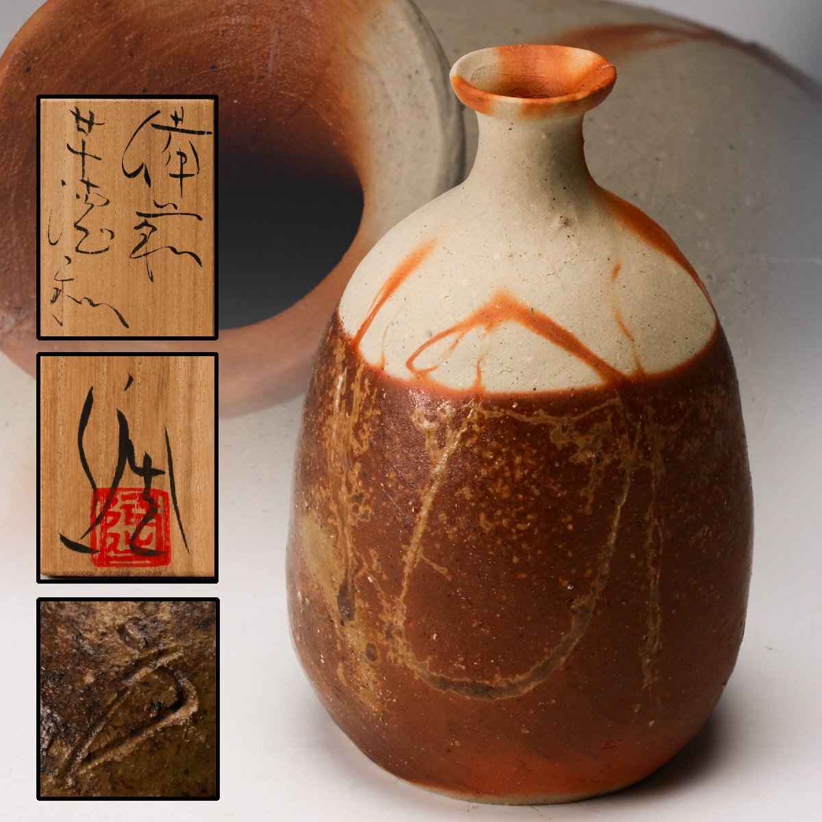 【佳香】斉藤隆 備前廿十徳利 共箱 共布 栞 本物保証