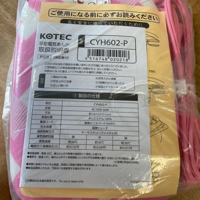 新品!1200円KOTEC CYH602-P ピンク電気あんか  日用雑貨