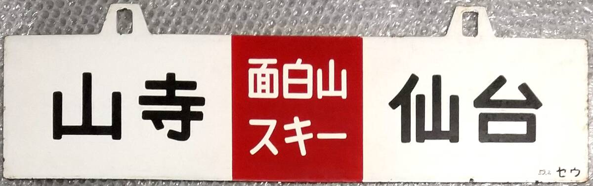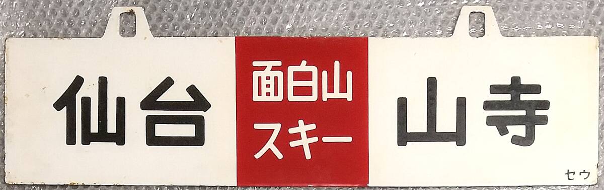 | A339 客車サボ 仙台[面白山スキー]山寺/山寺[面白山スキー]仙台 吊り下げ式 ホーロー板 彫文字 セウ |