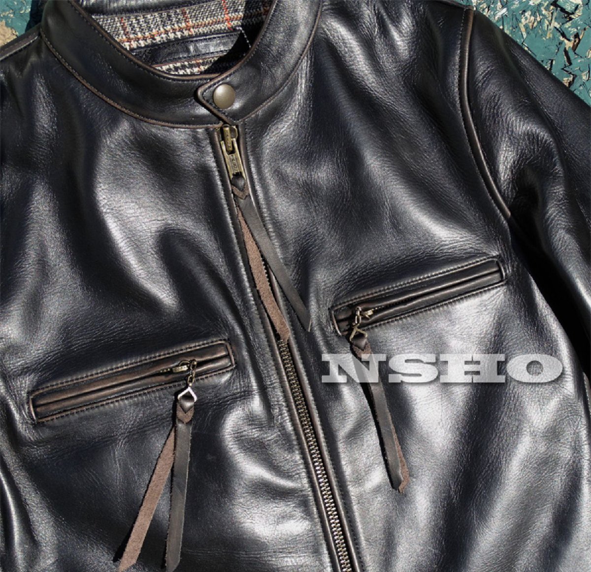 ★ご落札後お取引ナビでご希望サイズお知らせください★ 表地にはしっかりとしたホースハイドを使用しており、丈夫で長くご愛用いただけます。 厚みのある革ながらも馴染みやすく、着心地も快適です。 50's J-100タイプのシングルライダースをベースにしたデザインで、 カジュアルから通勤スタイルまで幅広くコーディネートできます。 植物鞣しで仕上げており、ヴィンテージ加工による独特の風合いが魅力です。 使い込むほどに味わいが増し、自分だけの革ジャンに育てられます。 ギフトにもおすすめの一着です。 上質なホースハイドが、大人のスタイルを格上げしてくれます。 ■状 態 :新品未使用 ■カラー :画像参考 ■実 寸 :背中側採寸 身幅/脇下すぐ ■SIZE :画像参考 ■素材:ホースハイド (馬革) ※サイズだけでは無く,必ず実寸をご確認下さい。 ※実寸は平置実寸。計測の仕方で若干の誤差がありますので参考程度。 |