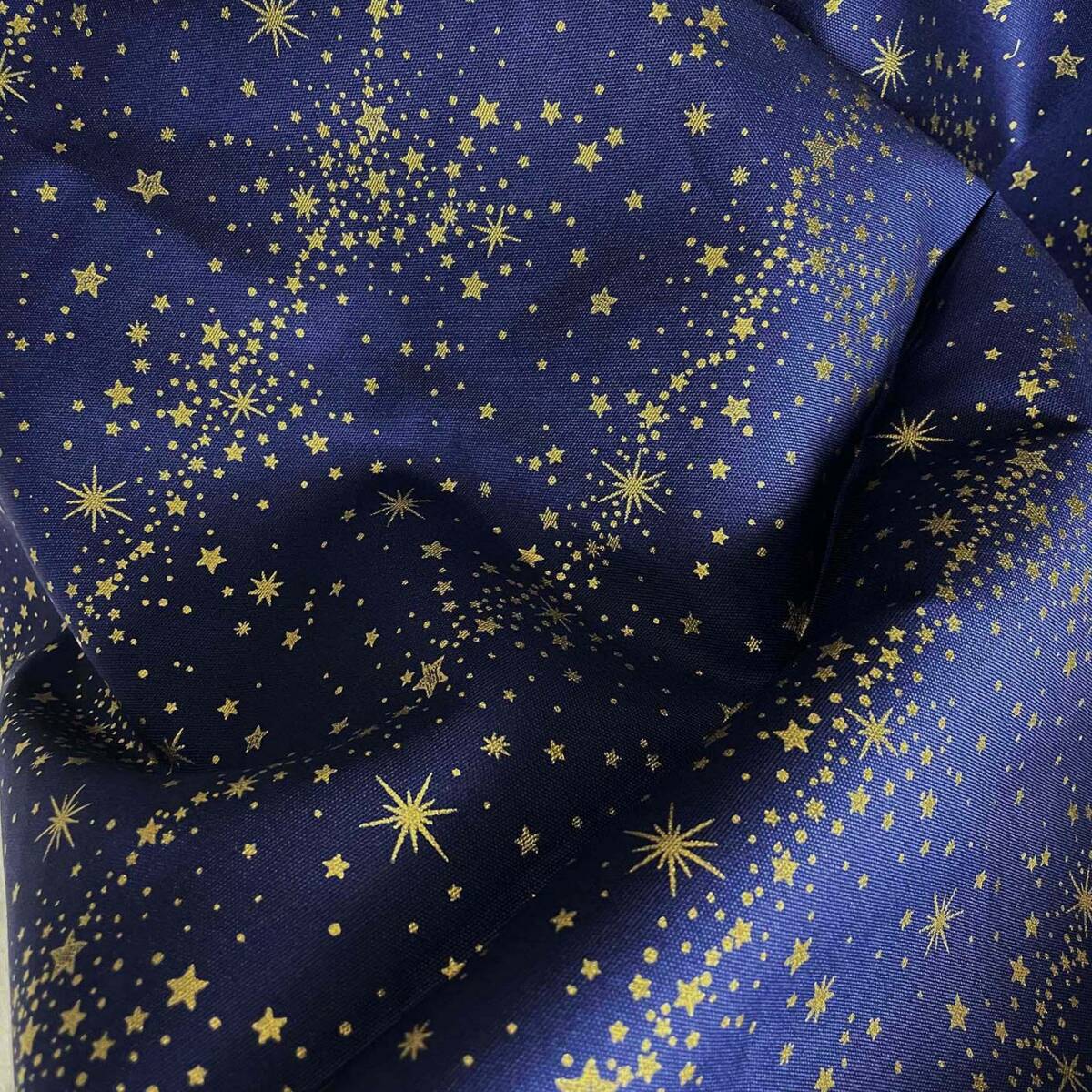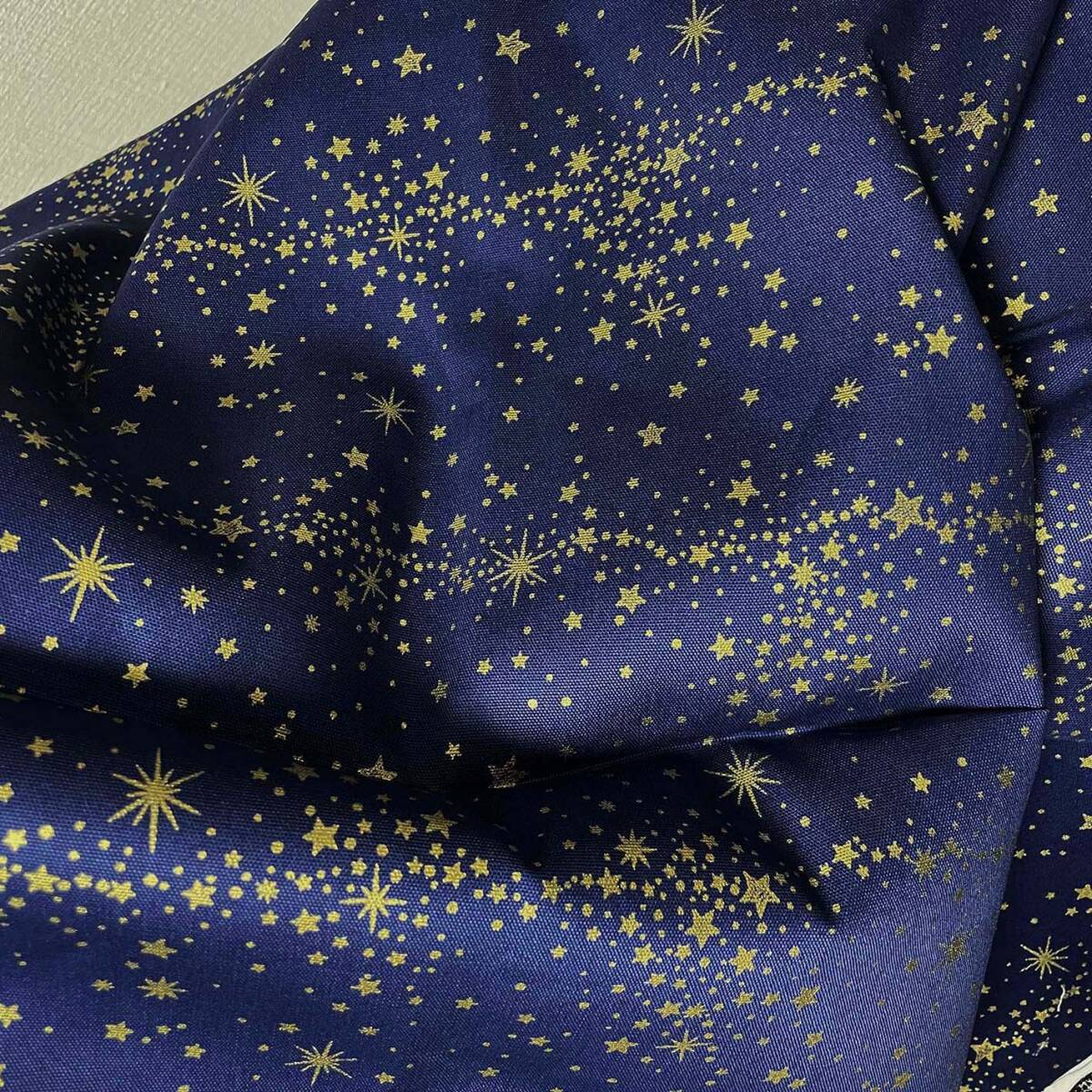 【綿オックス】金の星柄ドット柄はぎれ生地★銀河の布コットン2mネイビー紺ラメ
