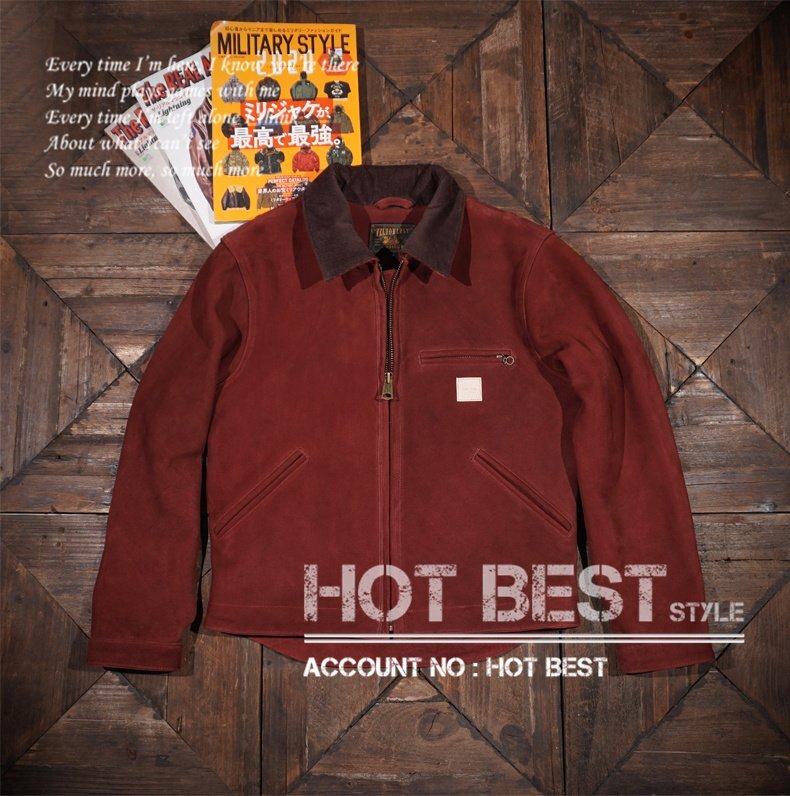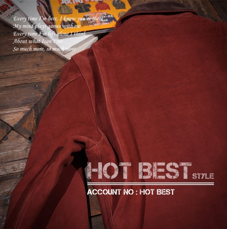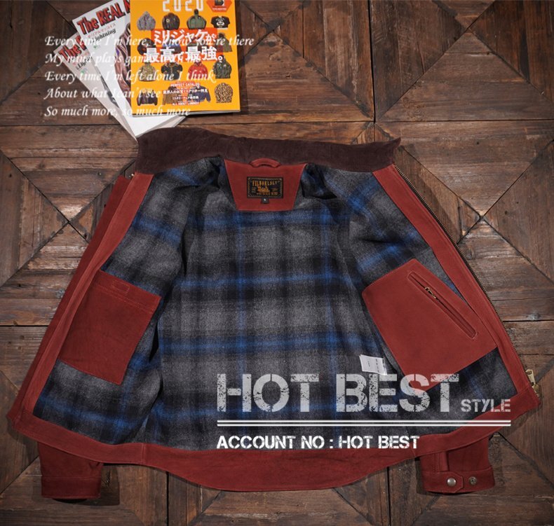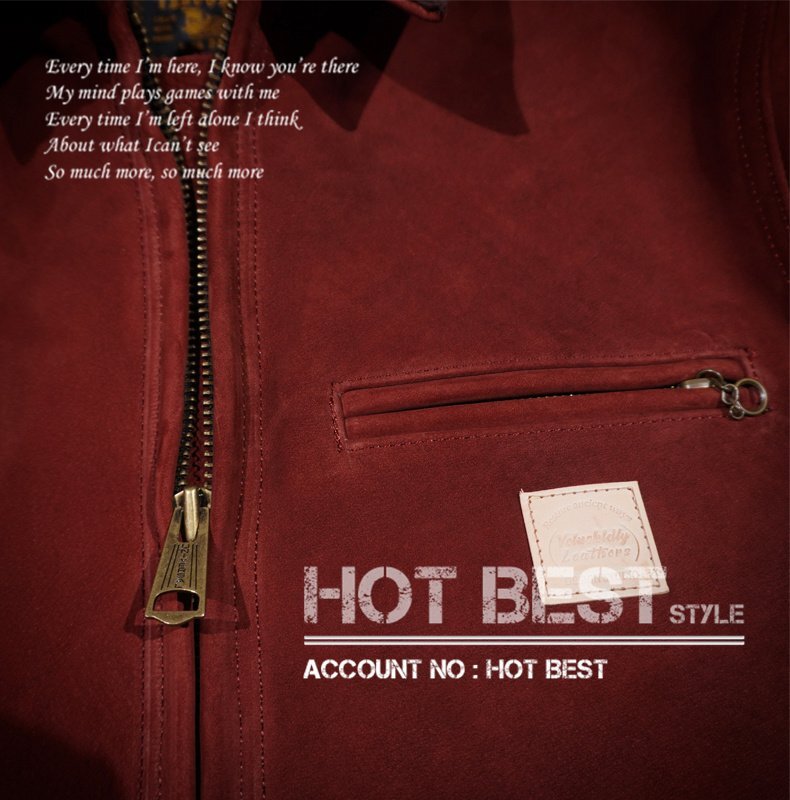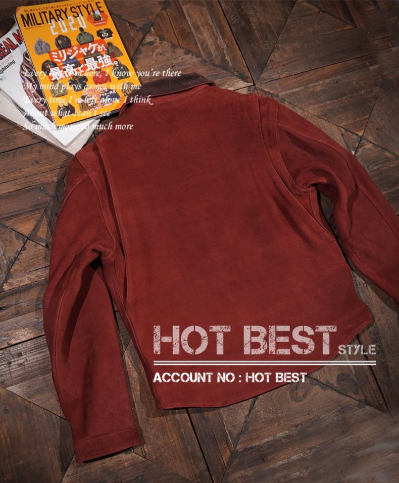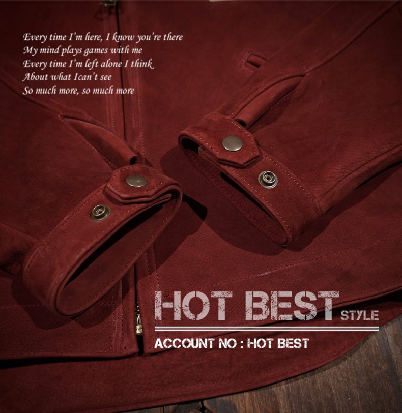 シンプルで洗練されたデザインの革ジャンで、上質なカウスエード(牛革)を使用しています。