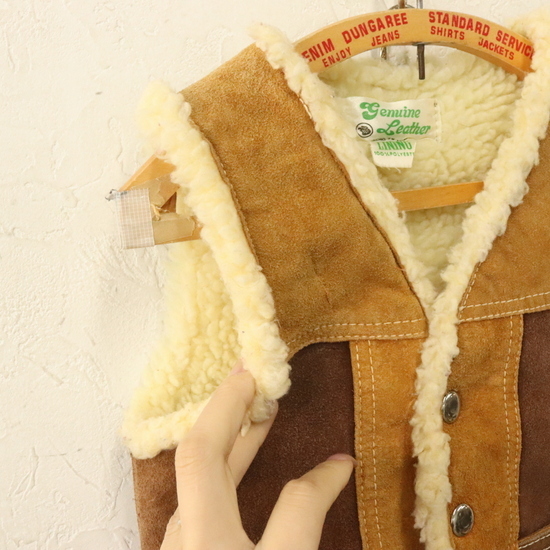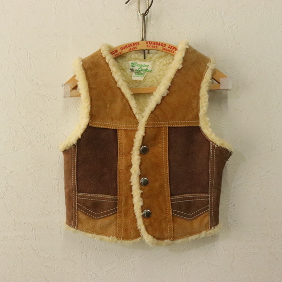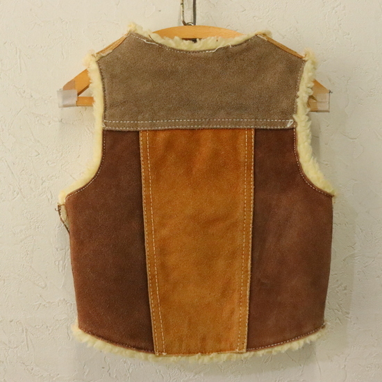 商品名 KD553 70sビンテージ レザーベスト パッチワーク kids 子供服 キッズ■1970年代製 ブラウン ボア アメカジ 古着 古着卸 激安 ヴィンテージ
