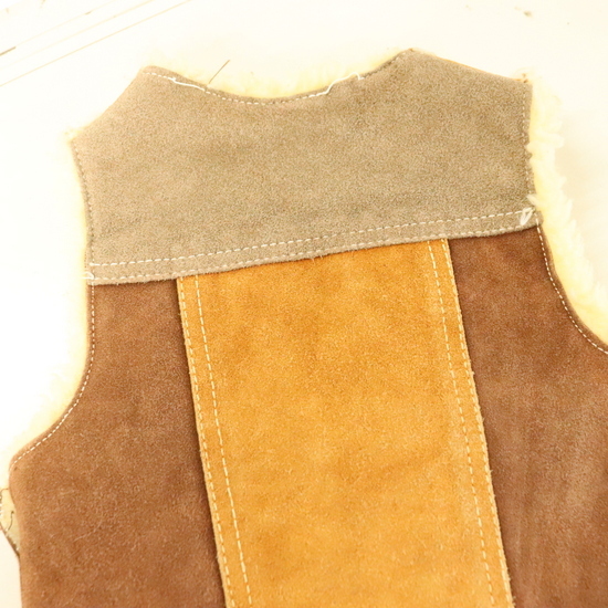 KD553 70sビンテージ レザーベスト パッチワーク kids 子供服 キッズ■1970年代製 ブラウン ボア アメカジ 古着 古着卸 激安 ヴィンテージ