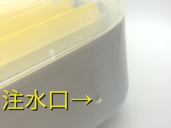 器外給水口:器外から給水可能(本体右側の注水口より給水)