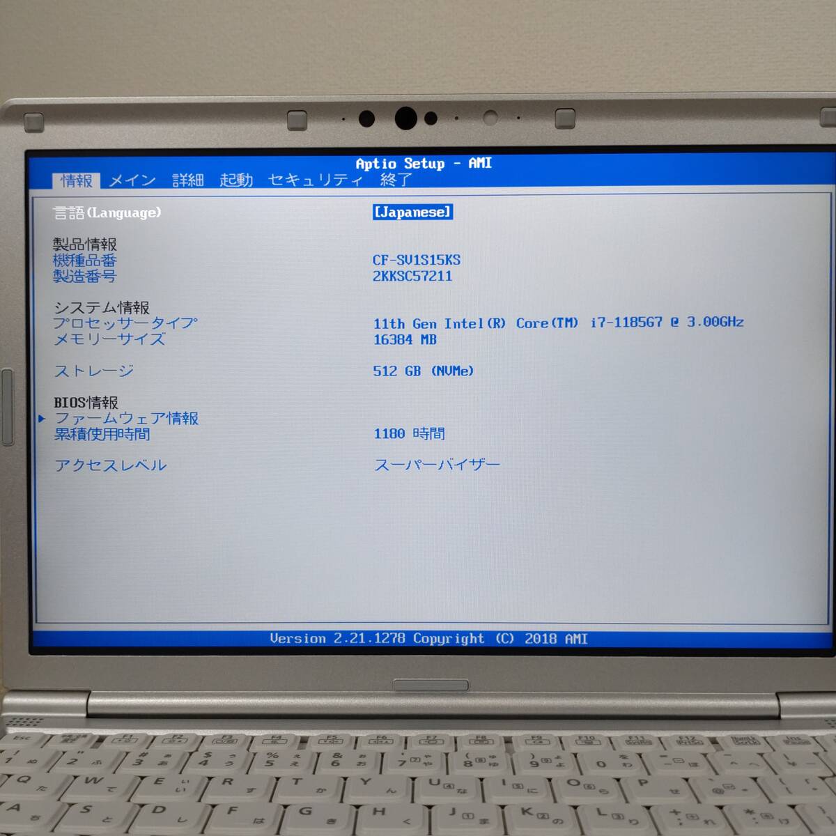 ※稼働時間の確認はBIOS画面からになります。写真をご確認ください。