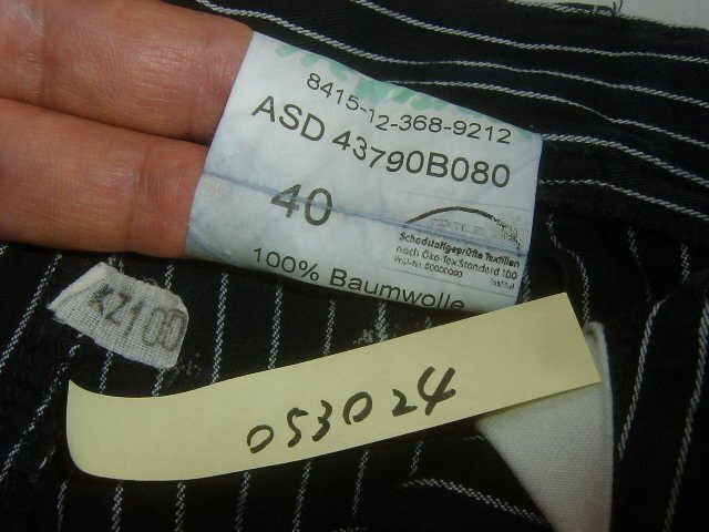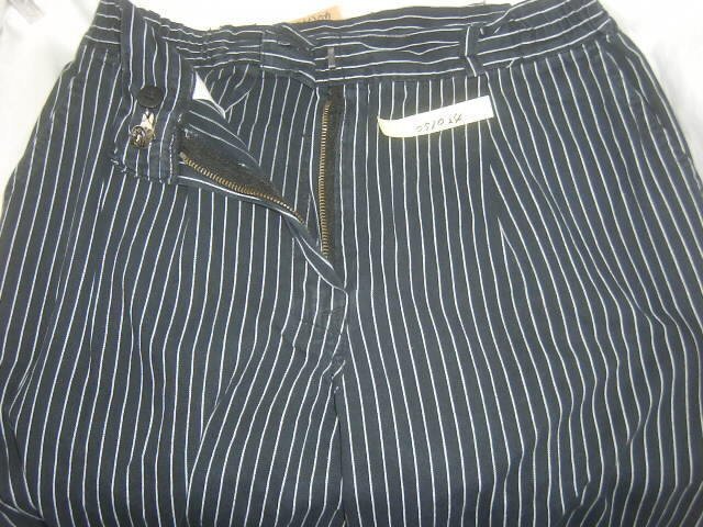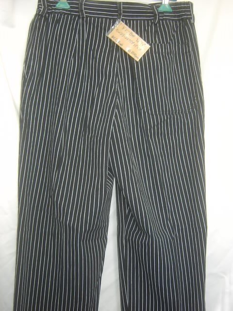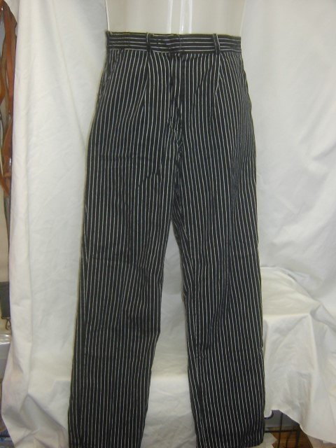 1.2枚目の写真は流用です。 ドイツ軍で採用されていたコックパンツです。色は黒に近い濃紺です。左右ポケットと後ろにも1つポケットが付いています。細いピッチにホワイトカラーのストライプが特徴です。柔らかな薄手のコットンが使用され、春夏と快適に履いていただけるパンツです。ゆったりとしたシルエットに少しテーパードがかかっています。ベルトループ付きでギュッとウエストを絞って履いていただいても、スッキリと違和感なく着用していただけます。 適度な色落ちのユーズドです。 サイズ40でウエスト74cm、太腿幅32cm、全長103cm、股下77cm程度です。 沖縄離島を除く全国元払い500円でお送りいたします。落札価格にプラスでお願いします。
