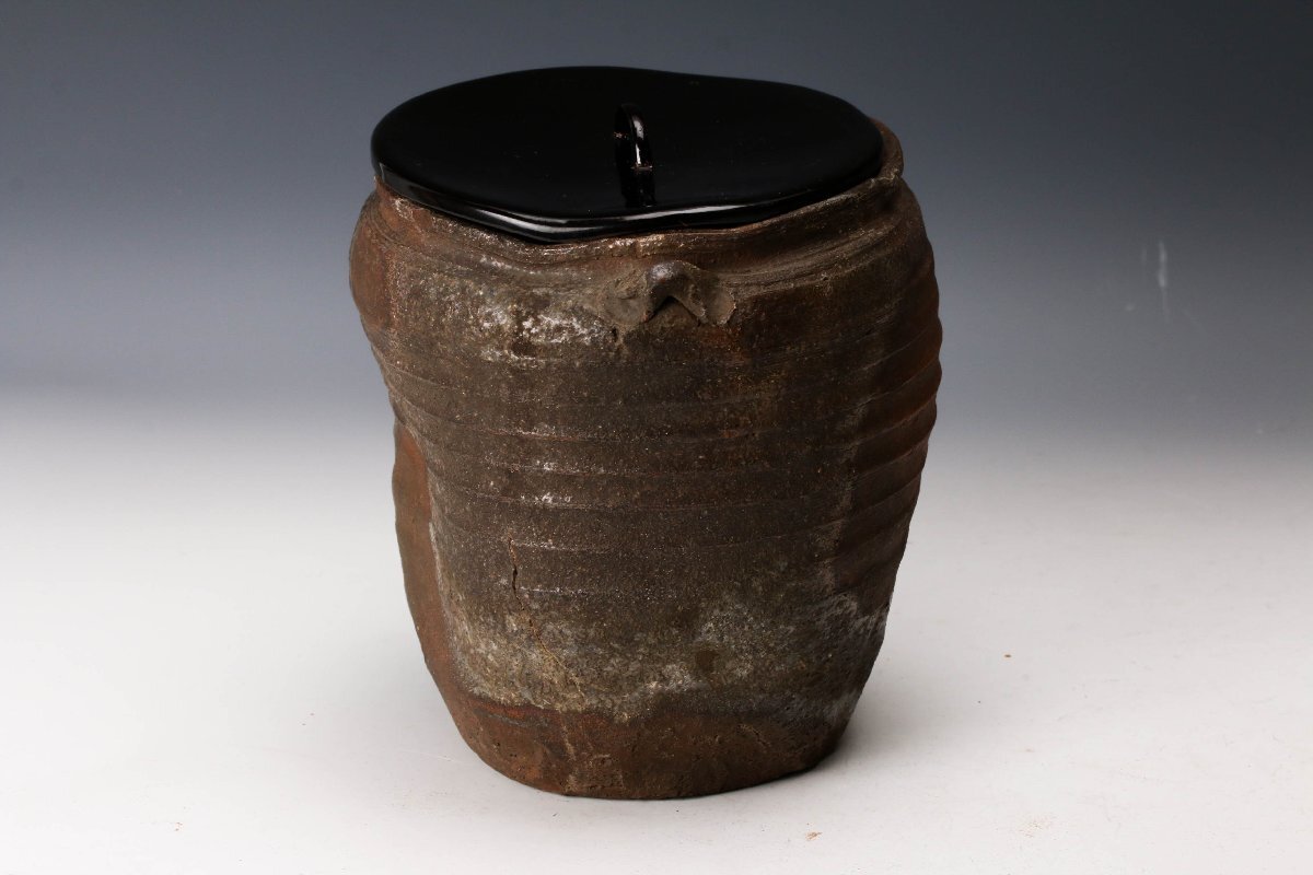 【佳香】時代 備前耳付水指 塗蓋 茶道具
