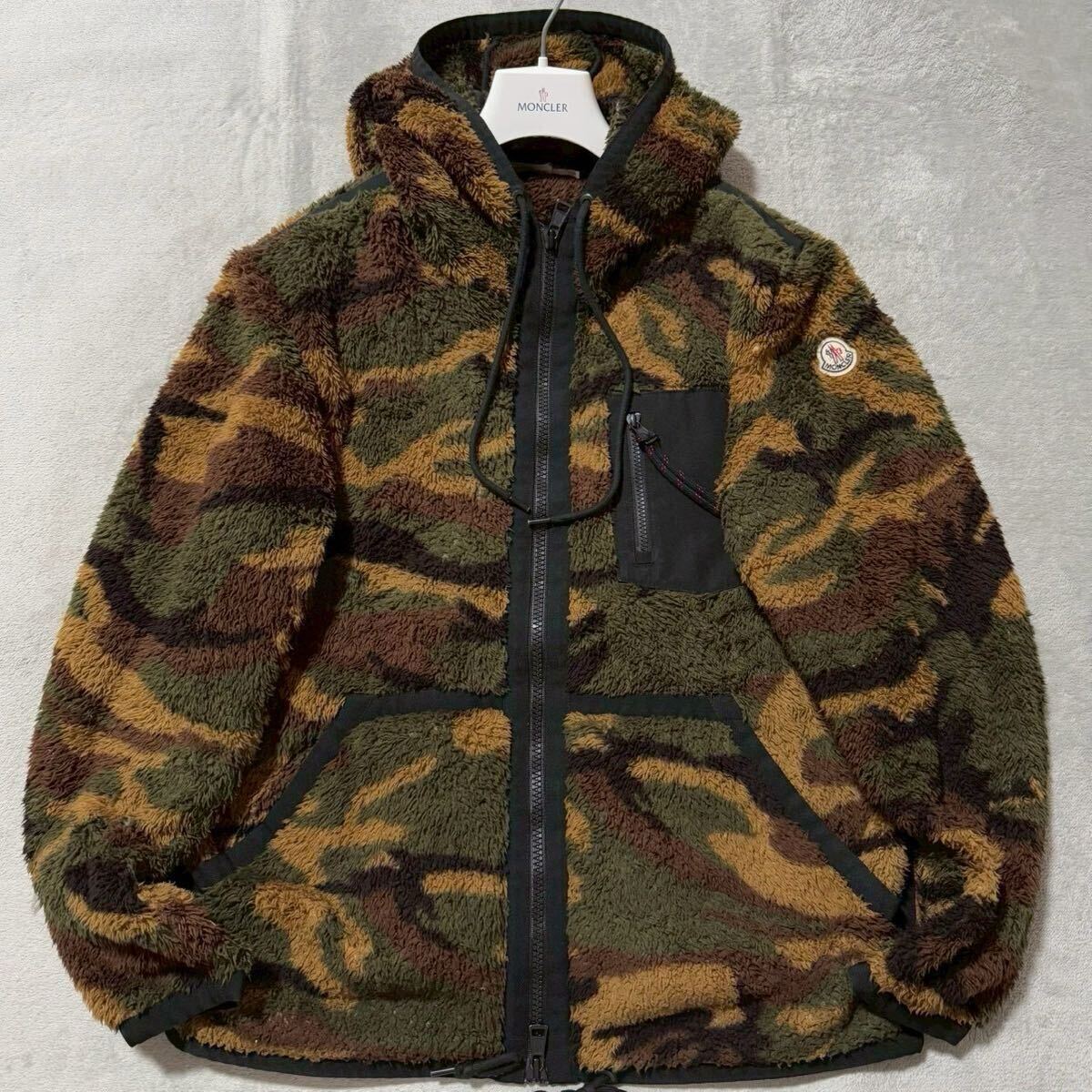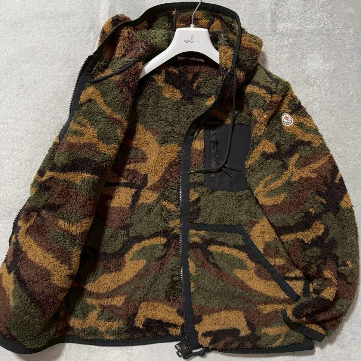 L相当/サイズ2★MONCLER MAGLIA CARDIGAN モンクレール ボア フリース ジャケット パーカー Wジップ ブルゾン 迷彩 カモフラ 総柄 アウター