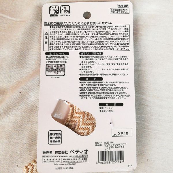 ☆★送料無料!!新品猫用おもちゃ!ペティオ らくらくデンタルトイ マウス 麻とコットン★☆