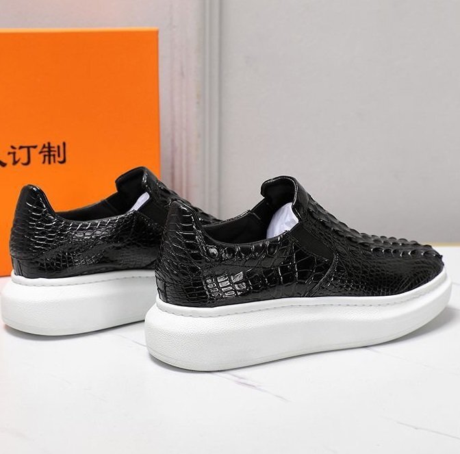 クロコダイルレザー スニーカー 最高級 ワニ革 クロコダイル 靴 メンズシューズ 革靴 ブラック 24.5cm 【n791】