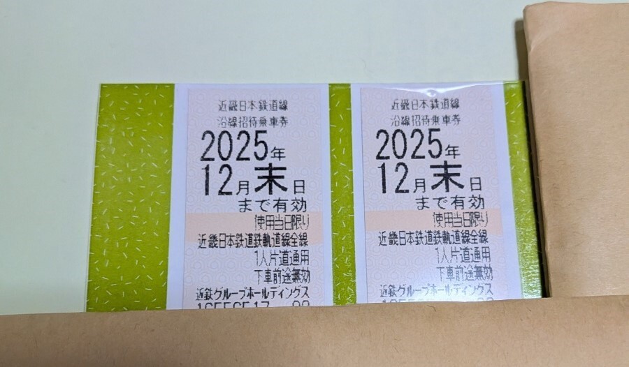 2枚組 近鉄株主乗車券 2025.12月末有効a