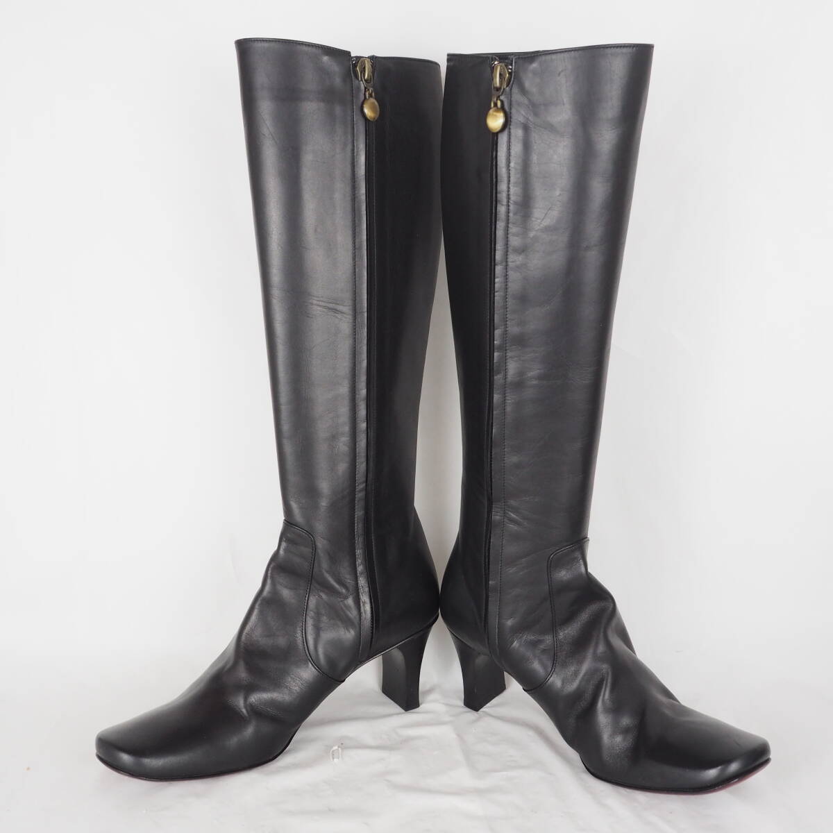 | ページをご覧いただきありがとうございます^^靴、ブーツを中心に出品しております。 すっきりとしたシルエットが美しく、脚をきれいに見せてくれるロングブーツです。 程よいヒール高でバランスが良く、エレガントなスタイルから普段使いまで幅広く活躍します。 内側は柔らかい素材で快適な足あたりとなっており、長時間でも心地よく履いていただけます。 ☆商品詳細☆