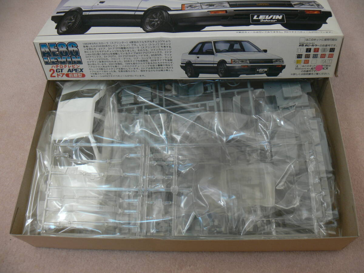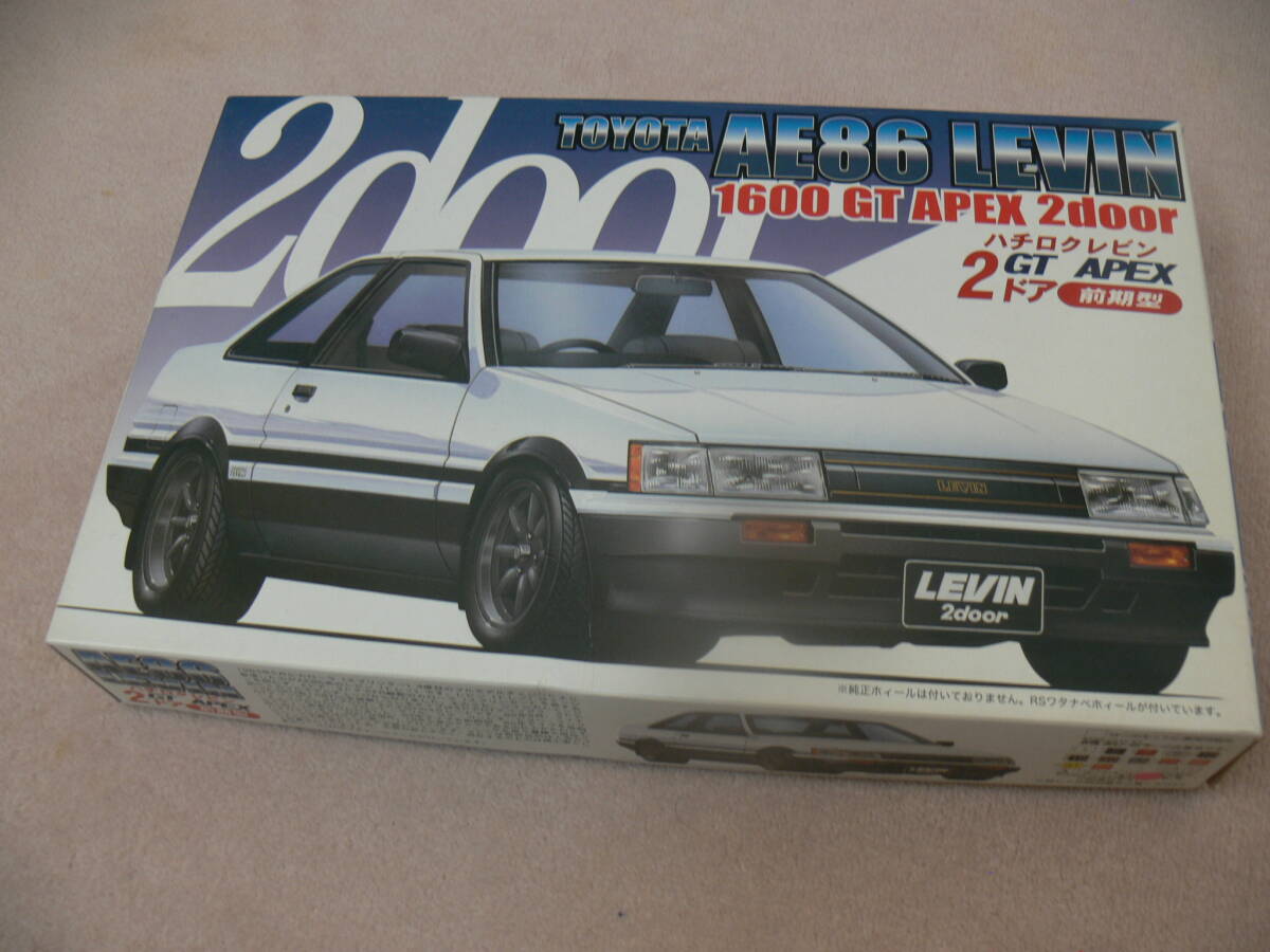 かなり古いフジミインチアップシリーズ1/24サイズのAE86レビンの2ドアGT APEX前期型で箱側面に小色褪せ有の生産終了品です。
