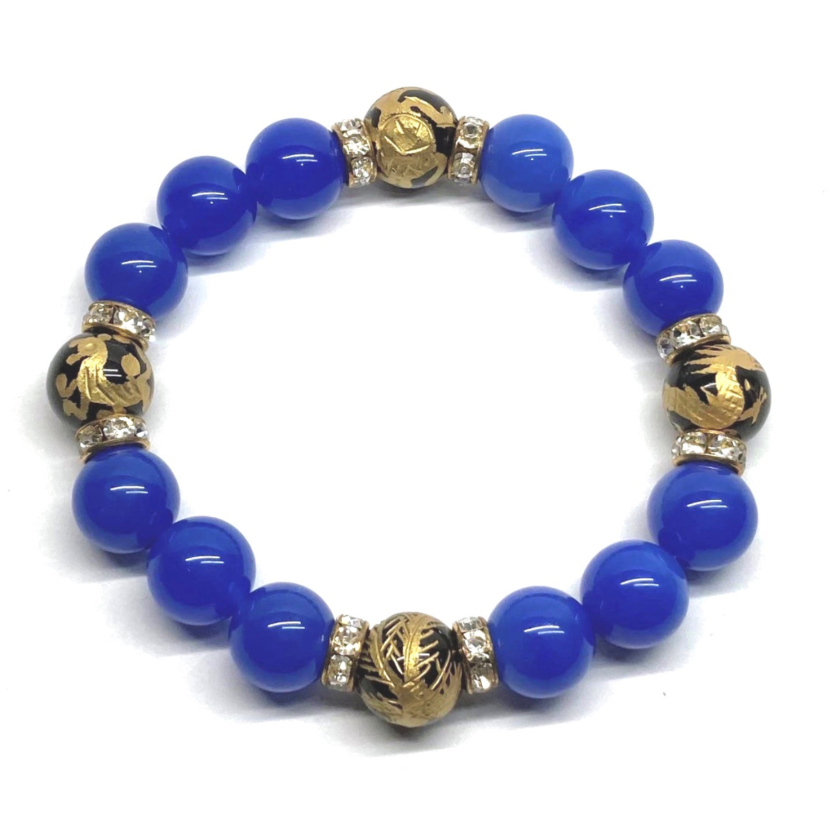 こちらは、四神獣金彫オニキと青瑪瑙を組み合わせたパワーストーンブレスレットです。四神獣は、中国の伝説で4つの方向(東西南北)を守護する神聖な神。四神獣、厄災から身を守り、多くの運気を呼び込むと言われております。石大きさは程よくインパクトのある12mm玉で内周 約17cmです。 数に限りがございますので気になる方はお早めにどうぞ。
