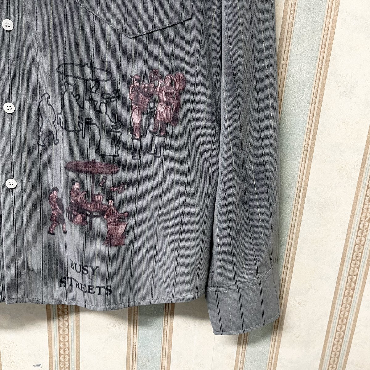 高級 定価4万 FRANKLIN MUSK・アメリカ・ニューヨーク発 長袖 シャツ 柔らか 折り襟 ストライプ柄 開襟 カジュアル 通学 通勤 日常着 春秋 サイズ3