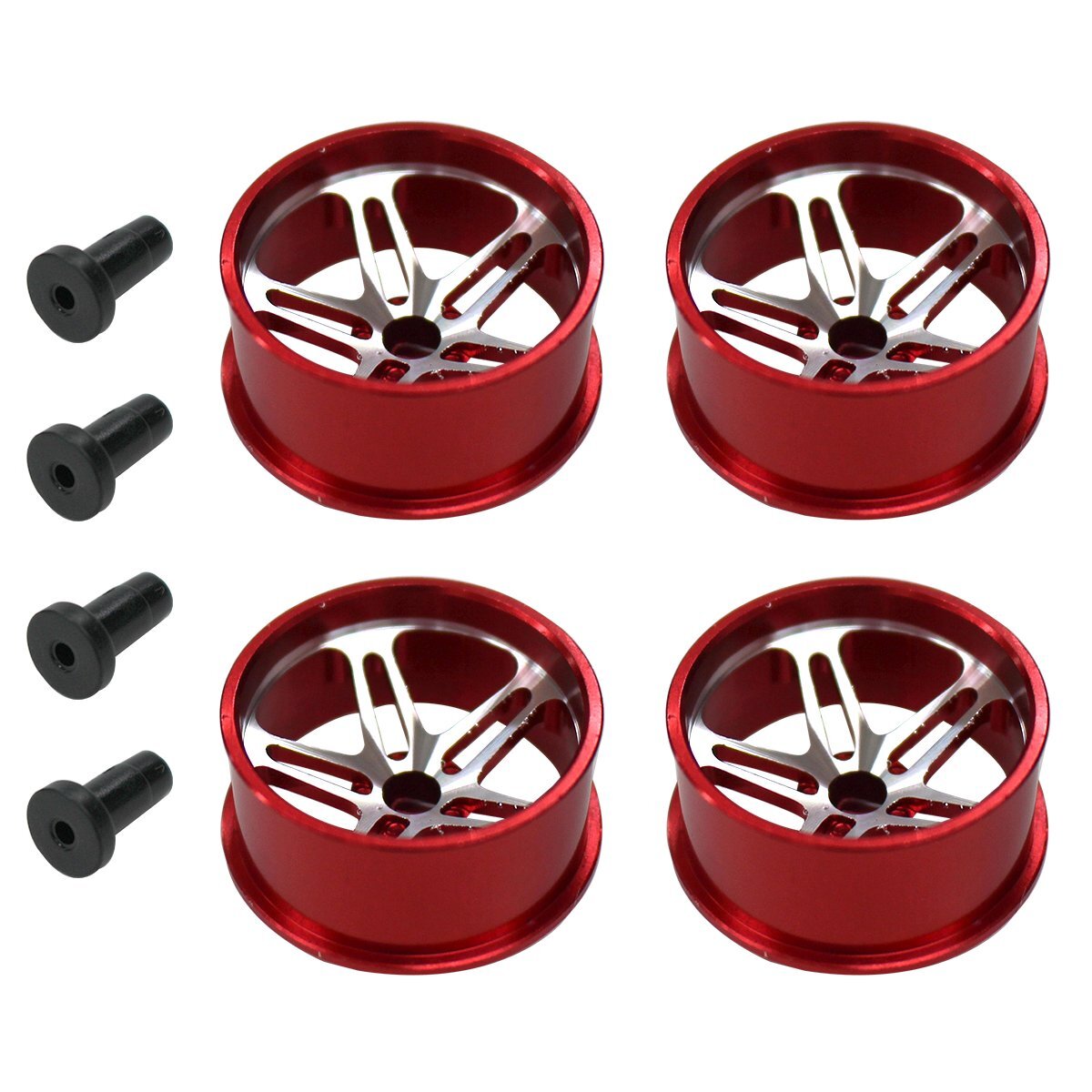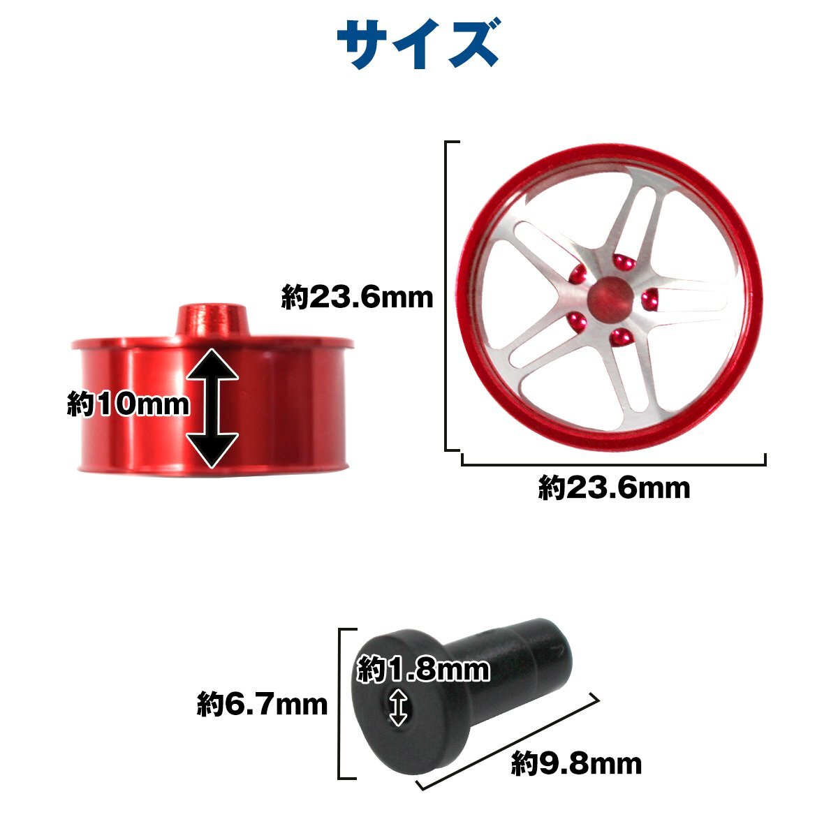 【新品即納】ミニ四駆用 4個セット アルミホイール ブラック デュアル 5スポーク 5穴 ローハイトタイヤ ホイル ホイール 赤 レッド