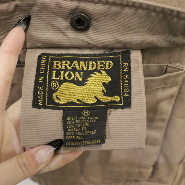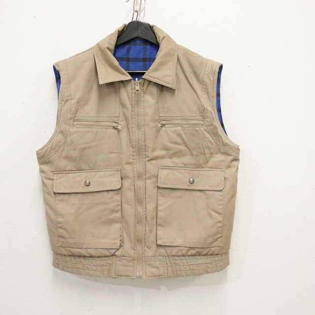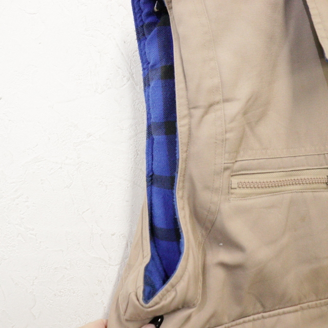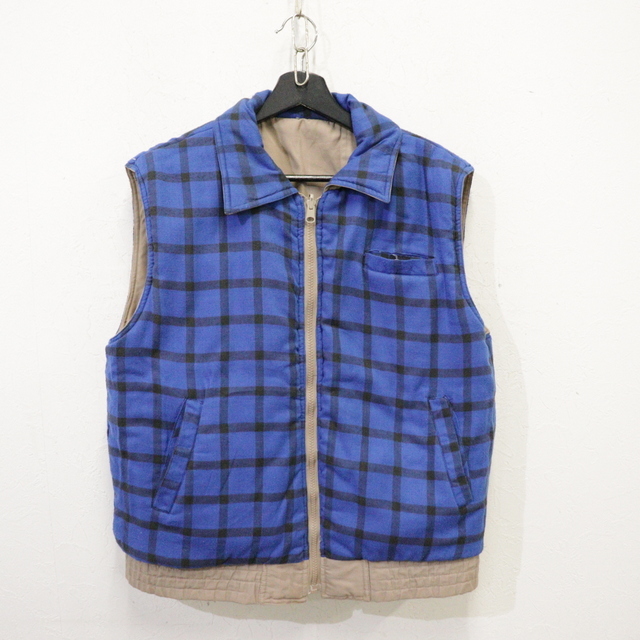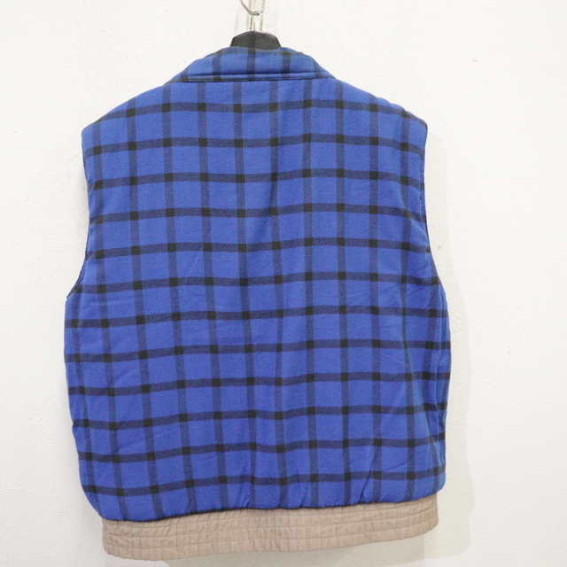 商品名 U176 90sビンテージ BRANDED LION 中綿ベスト■1990年代製 表記Mサイズ ベージュ ブルー リバーシブル チェック フルジップ アメカジ