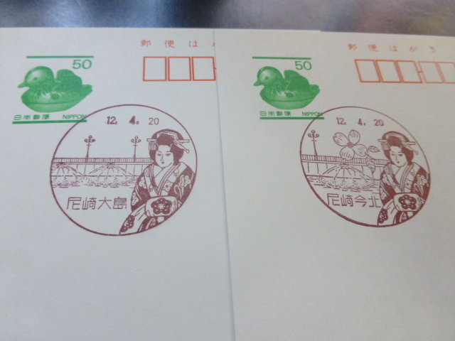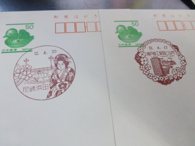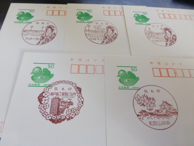 鴛鴦はがき 初日風景印 5枚 兵庫 尼崎大島ほか